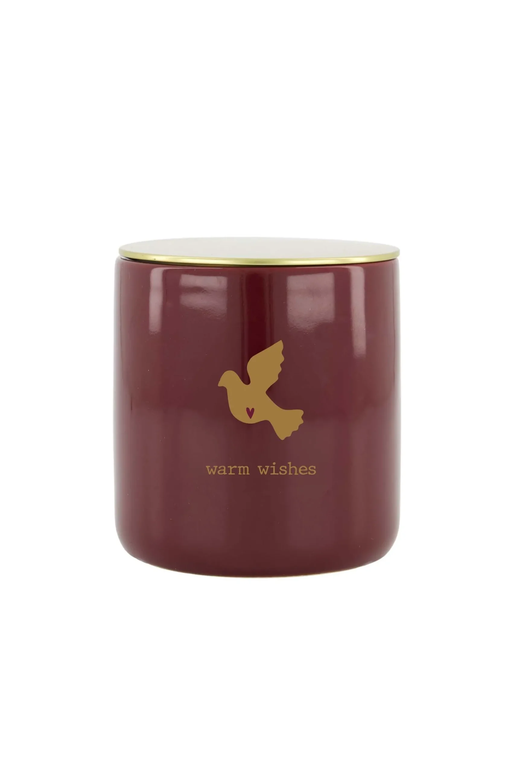 Zusss keramieken geurkaars winterbloem warm wishes donkerrood L|Deze geurkaars van Zusss ziet er zo gezellig uit! Deze heerlijke geurkaars zit in donkerrood keramiek. Daarop staat een gouden duif en ‘warm wishes’. Deze geurkaars verspreidt de geur van warm wool, wat zorgt voor een gezellige, winterse sfeer in huis. De kaars heeft een doorsnede van 10cm en is 10,5cm hoog en heeft ca 50 branduren. Met het gouden deksel kun je ‘m ook nog afsluiten, handig! Tip: neem ook eens een kijkje bij de Zusss kaarsenhouders! |Zusss: basic, stoer, uniek en een tikkeltje eigenwijs.