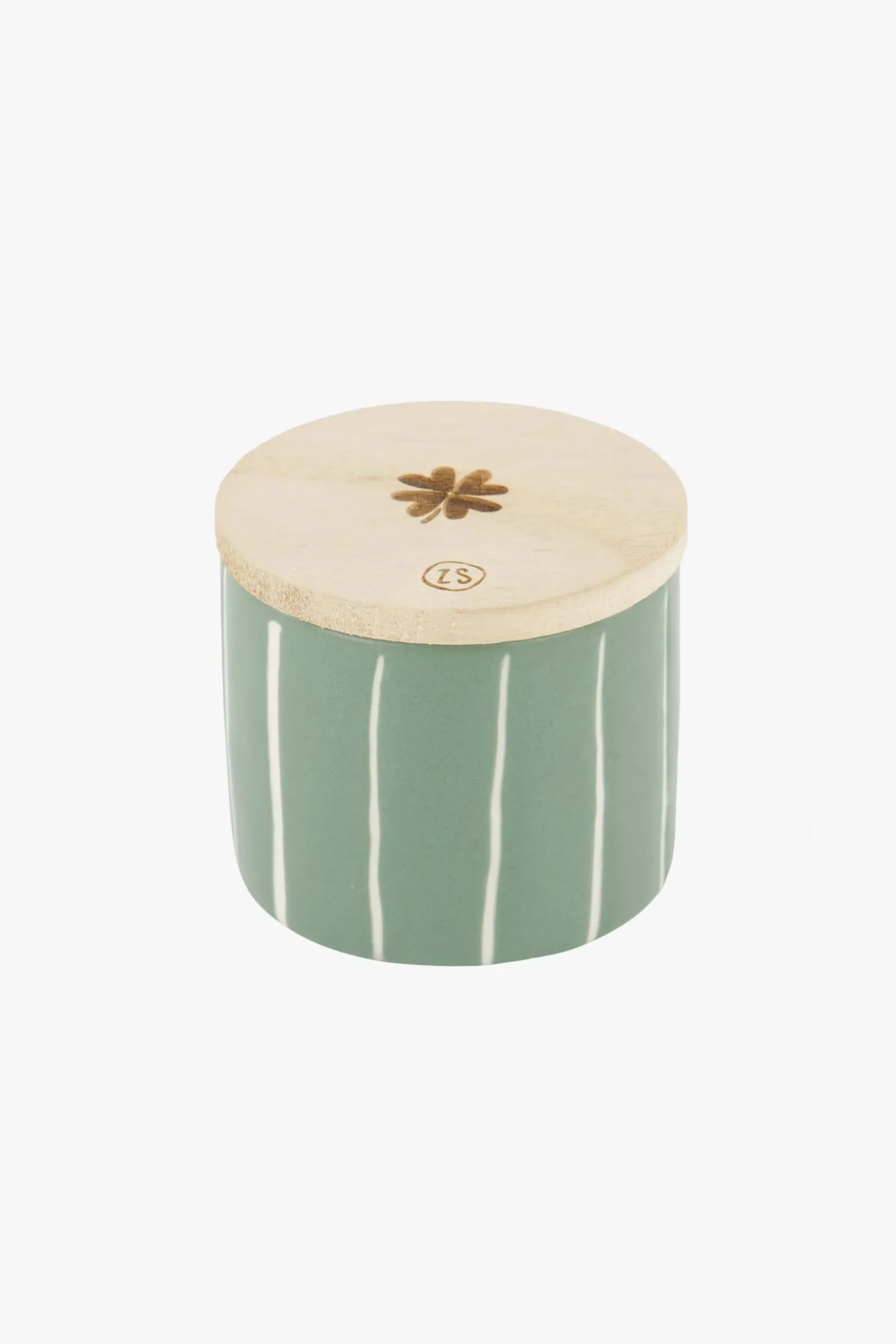 ZUSSS Geurkaarsen*keramieken geurkaarsje met houten deksel klavertje salie saligroen