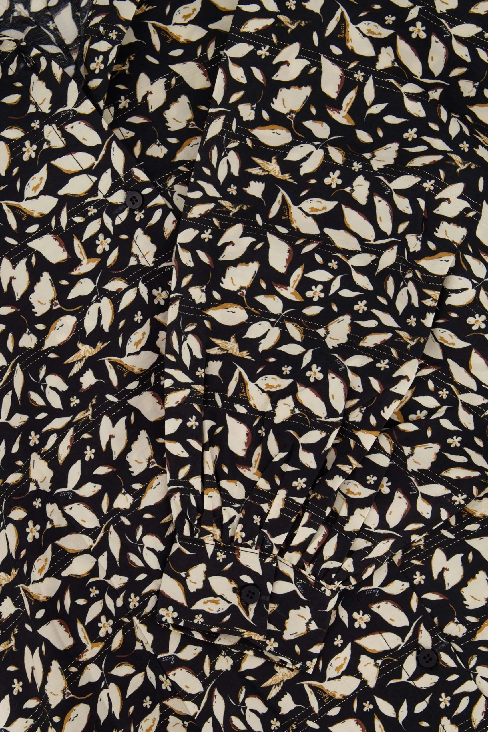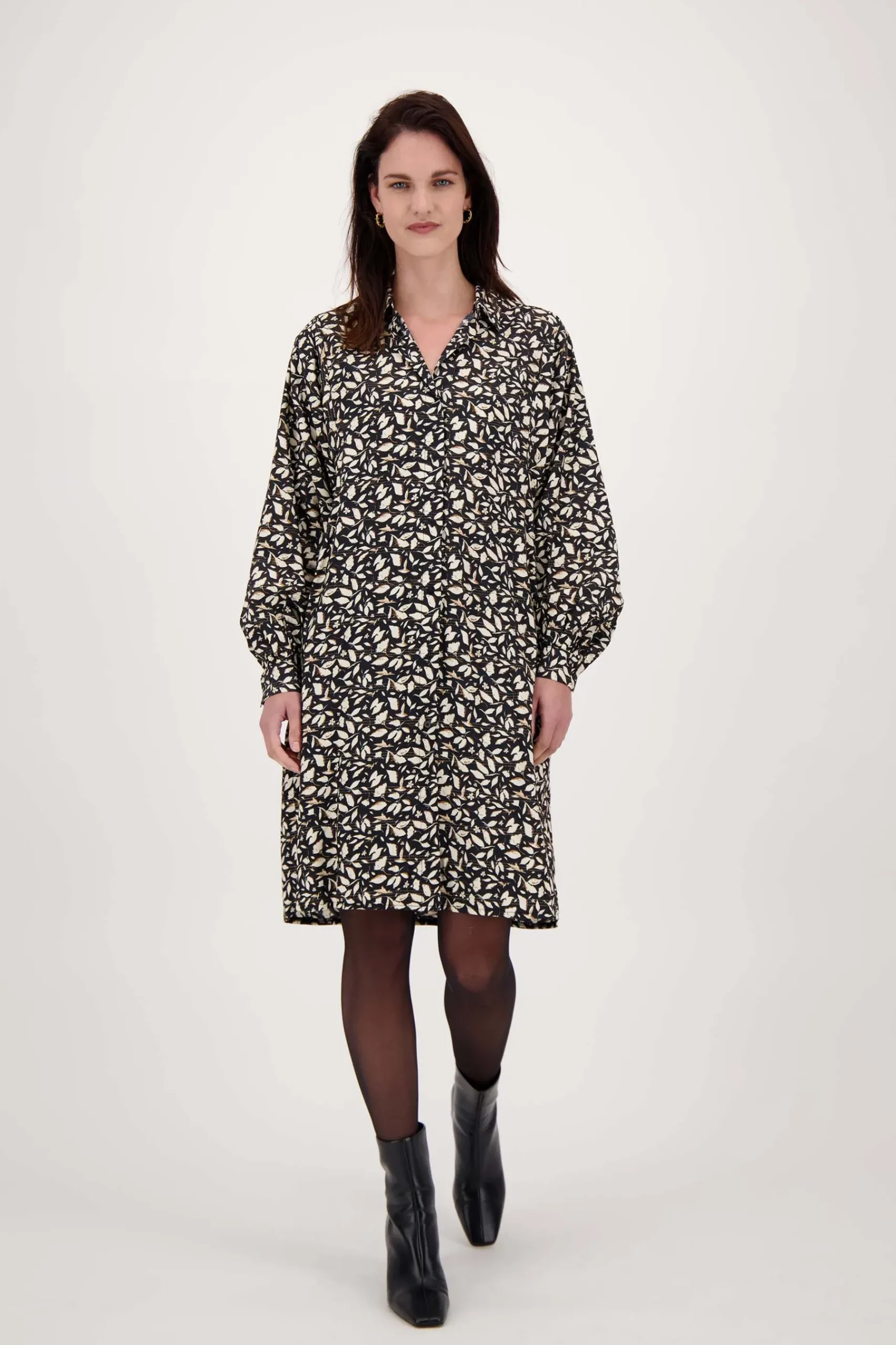 Zusss jurk blaadjes print met lurex zwart|Een fijne jurk van Zusss met blaadjes print. Deze zwarte jurk heeft een blaadjesprint en een mooi glitterdraadje door de stof heen. De jurk sluit aan de voorkant met knoopjes en heeft lange mouwen. Ben jij weg van het design op deze jurk? Bekijk dan ook de andere Zusss kleding met een blaadjes print. Combineer ‘m met een stoere sneaker of laars! De jurk is gemaakt van 83% VI, 16% PA en 1% MY. Neem ook eens een kijkje bij de Zusss tassen. Welke match jij bij deze leuke Zusss jurk?|Zusss: basic, stoer, uniek en een tikkeltje eigenwijs.