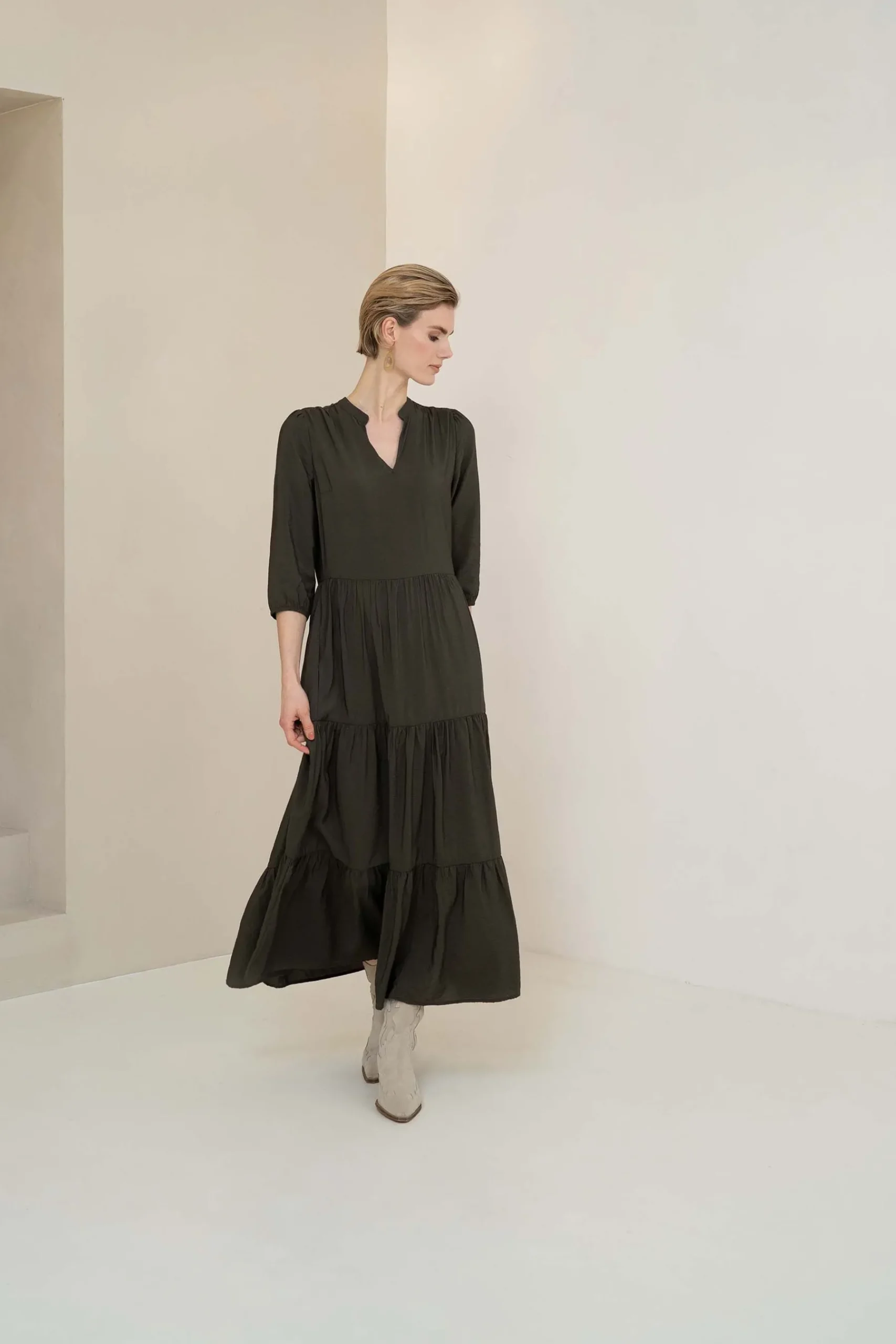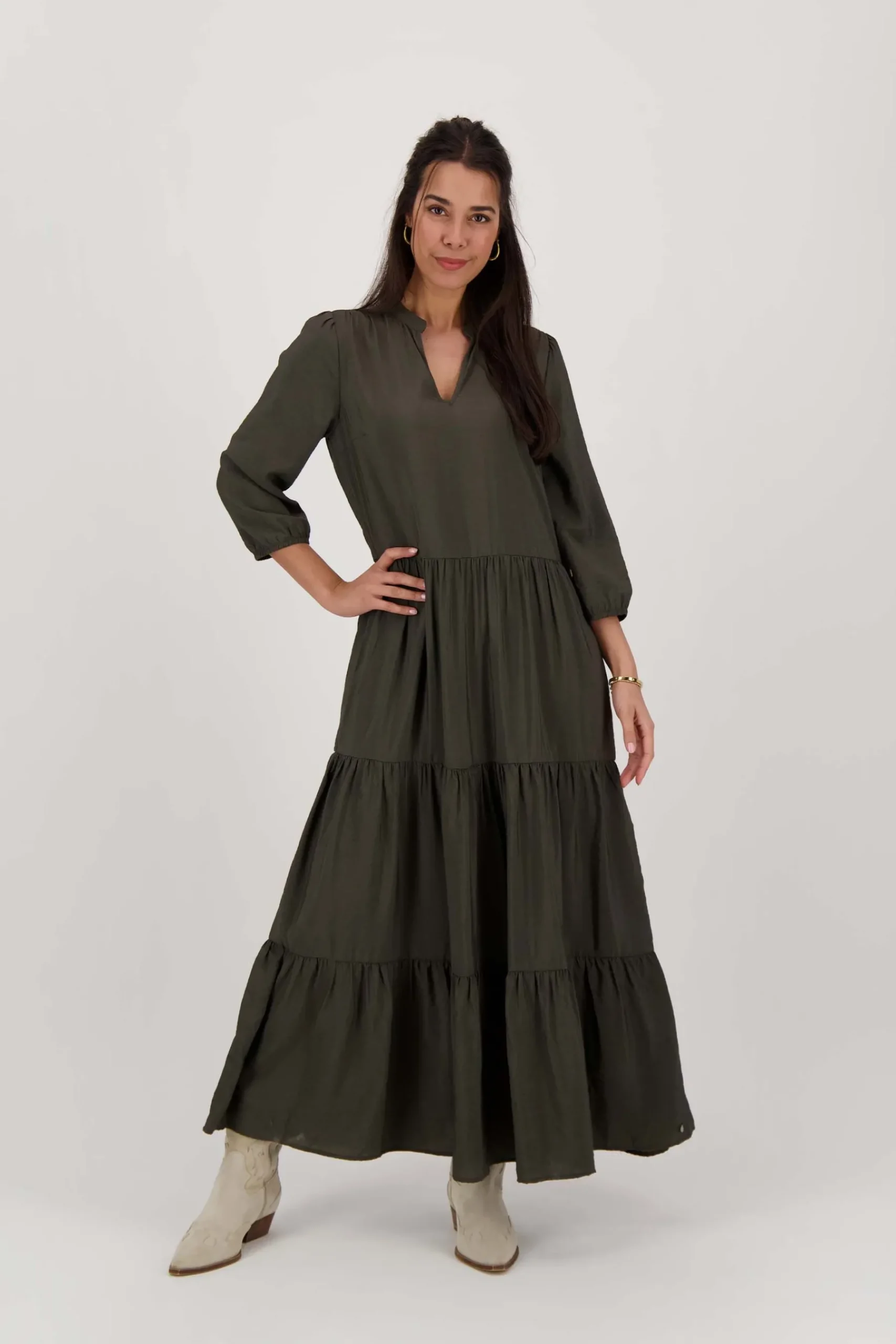 Zusss maxi jurk antracietgrijs|In deze prachtige jurk van Zusss straal je helemaal! Met deze mooie jurk zwier jij met gemak door de zomerse dagen heen. De jurk heeft een v-hals en mouwen tot halverwege de onderarm. De maxi jurk is antracietgrijs van kleur en gemaakt van 85% viscose en 15% polyamide. Je maakt jouw zomerse outfit af met stijlvolle sandalen of laarzen. Neem ook eens een kijkje bij de Zusss tassen ! Welke maakt jouw nieuwe outfit af?|Zusss: basic, stoer, uniek en een tikkeltje eigenwijs.