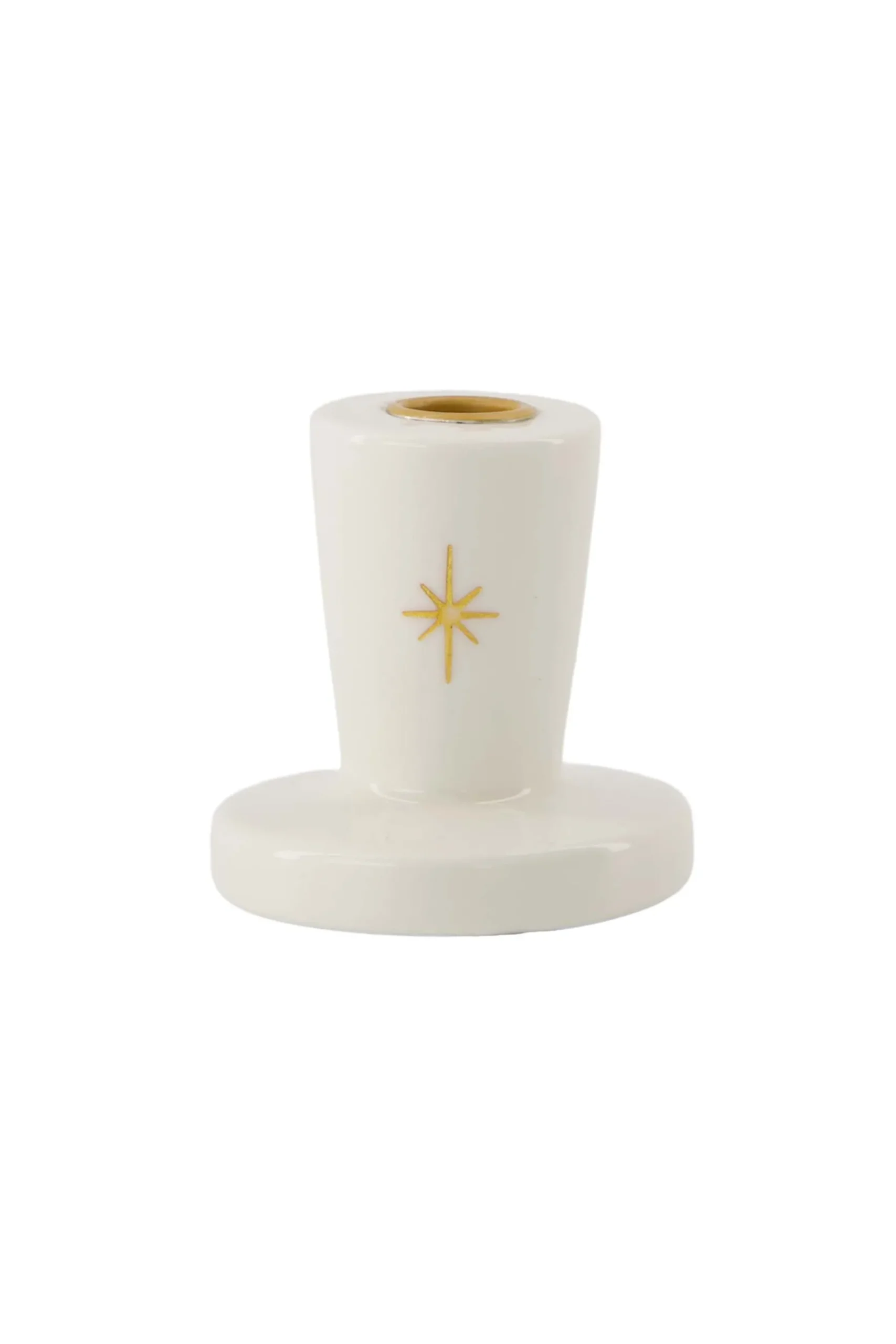 ZUSSS Kaarsen|Kaarsenhouders*keramieken kandelaar gouden ster wit