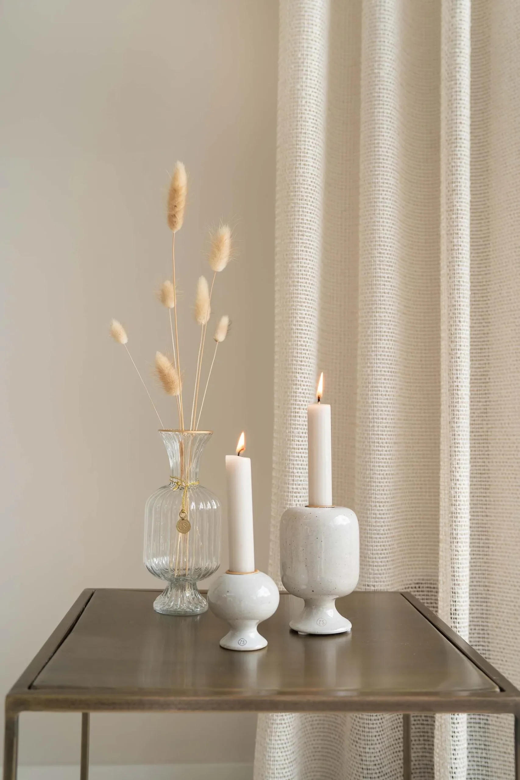 ZUSSS Kaarsen|Kaarsenhouders*keramieken kandelaar M glazuur spikkels zand