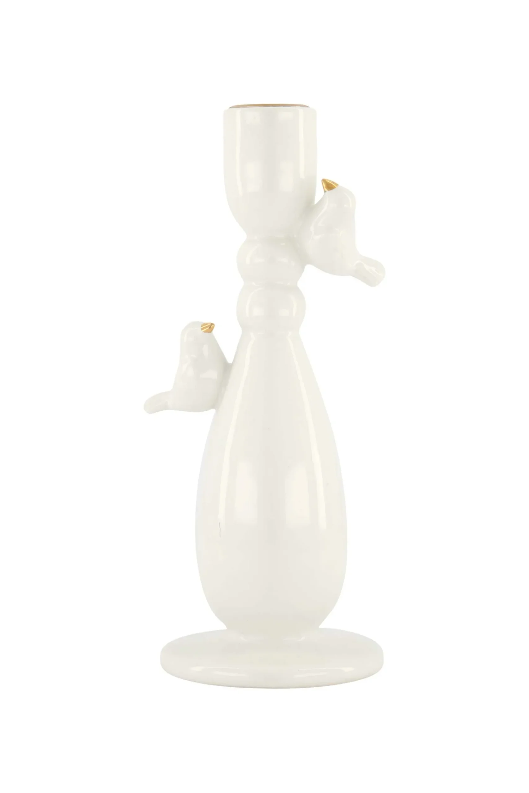 ZUSSS Kaarsen|Kaarsenhouders*keramieken kandelaar vogeltjes wit/goud