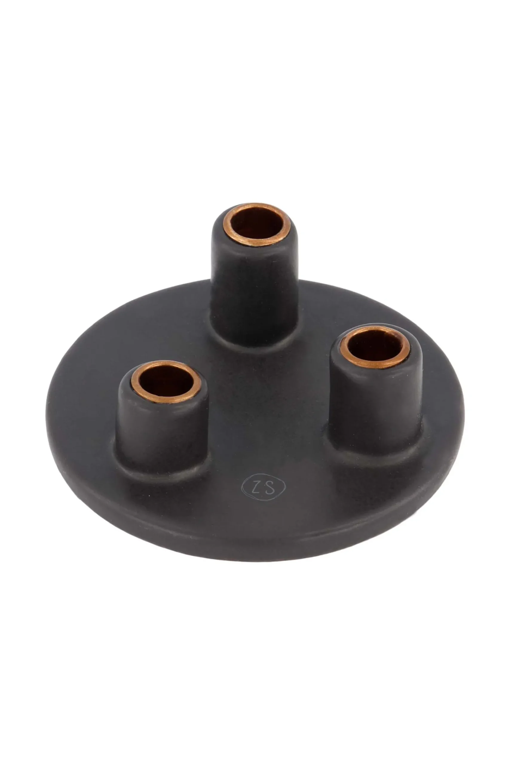 Zusss ronde kandelaar keramiek|Met deze kandelaar waarin 3 smalle kaarsjes van Zusss passen heb je meteen een leuk sfeertje in je huis. De drie openingen voor de kaarsen verschillen onderling in hoogte waardoor er een leuk speels effect ontstaat. In dit kandelaartje passen de smalle Zusss kaarsen van 17cm , deze worden in doosjes van 10 stuks verkocht. Het Zusss logo staat afgebeeld op het ronde schaaltje. De kleur van de kandelaar is antracietgrijs wat erg leuk te combineren is met de verschillende kleuren smalle kaarsjes. De kandelaar is 10 cm doorsnede.|Zusss: basic, stoer en een tikkeltje eigenwijs.