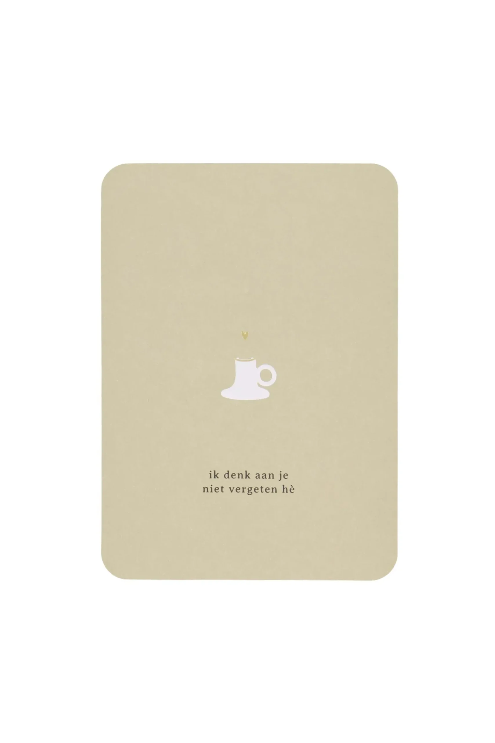 Zusss ansichtkaart ik denk aan je zand|Dit Zusss kaartje valt zeker op tussen alle andere kaarten! Op deze zandkleurige kaart staat: ik denk aan je, niet vergeten hè. Perfect om bijvoorbeeld iemand een hart onder de riem te steken. Het plaatje helemaal compleet maken? Kijk ook eens bij de Zusss kadootjes! |Zusss: basic, stoer, uniek en een tikkeltje eigenwijs.