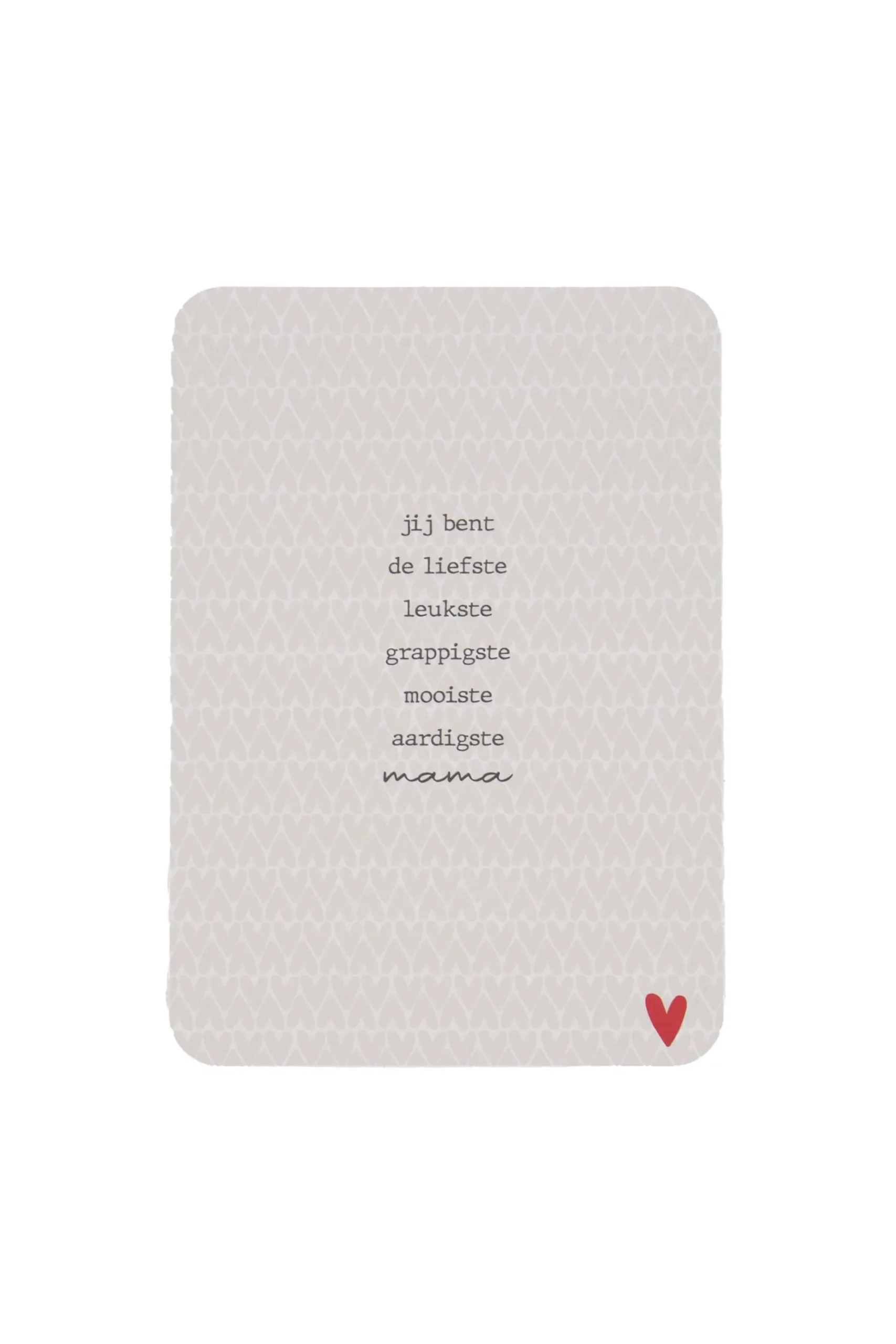 Zusss ansichtkaart ronde hoeken liefste mama zand|Verdiend jouw moeder nou ook een lief kaartje? Daar is deze ansichtkaart van Zusss perfect voor! Deze kaart is voorzien van een zandkleurige hartjesprint met daarop een tekst over de liefste mama. Schrijf er een lieve boodschap op en geef ‘m aan jouw moeder. Om het plaatje helemaal compleet te maken combineer je deze kaart met een leuk Zusss kadootje!|Zusss: basic, stoer, uniek en een tikkeltje eigenwijs.