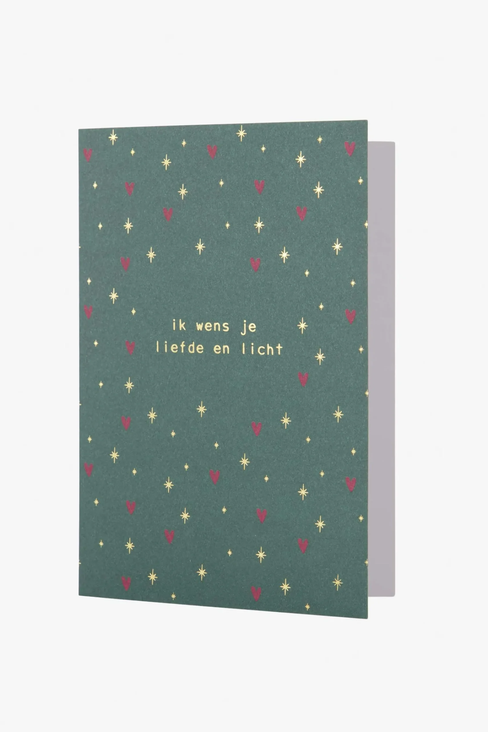 Zusss wenskaart met gouden envelop liefde & licht donkergroen|Wie verras jij met deze wenskaart van Zusss? Deze mooie kaart is donkergroen van kleur met daarop gouden sterretjes en rode hartjes. Ook staat op de voorkant de tekst ‘ik wens je liefde en licht’. Het is altijd leuk om een kaartje te ontvangen of te sturen. Juist ook rondom de feestdagen! Extra leuk, bij deze wenskaart zit een gouden envelop! Kijk ook eens bij de Zusss woonaccessoiresom jouw plekje gezellig te maken. |Zusss: basic, stoer, uniek en een tikkeltje eigenwijs.
