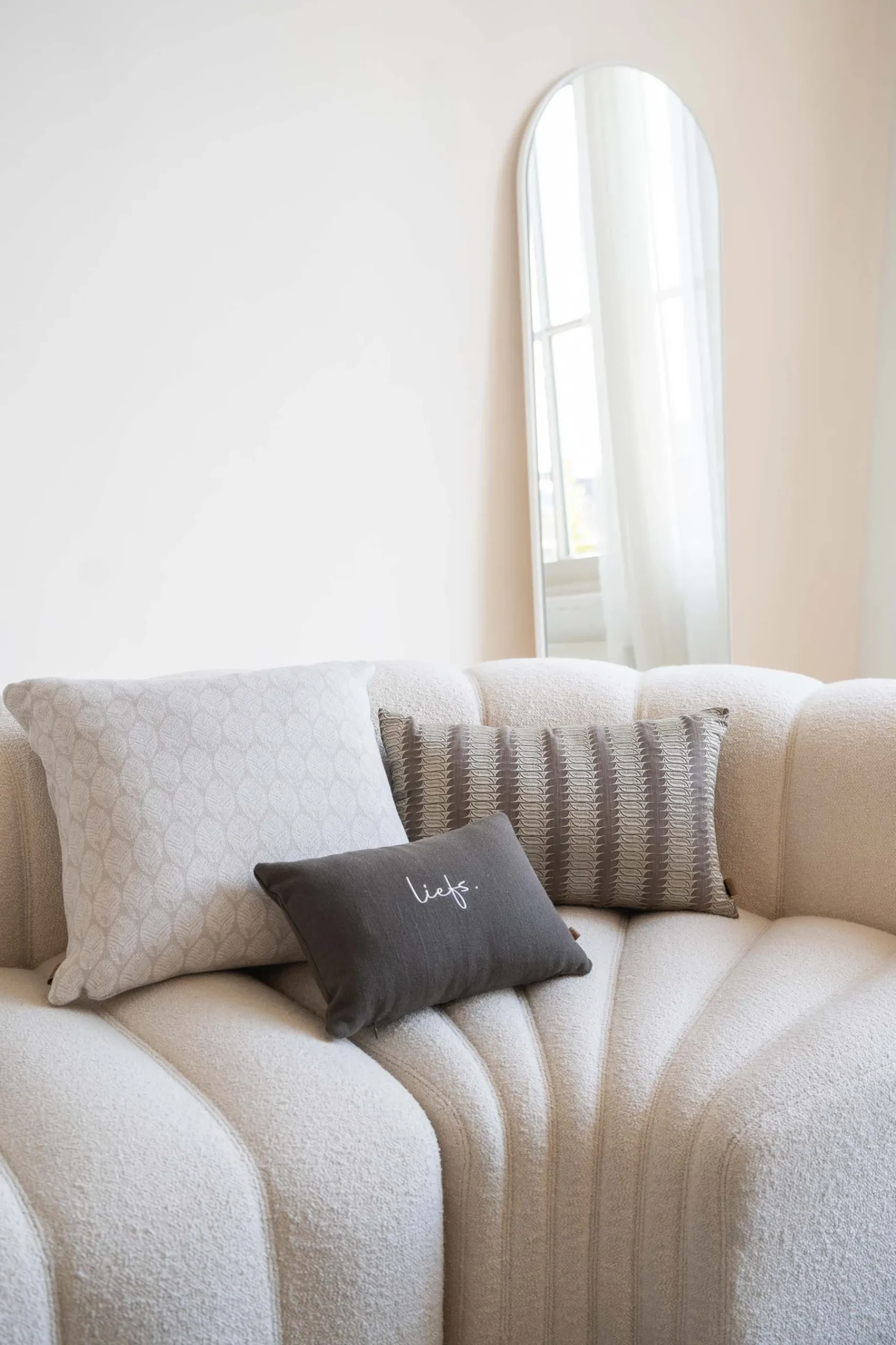 Zusss kussen liefs met hartjes 35x25cm groengrijs|Dit groengrijze Zusss kussen is o zo leuk! Door het warme kleurtje zorgt dit kussen voor een fijne sfeer. Op de voorkant van het kussen staan drie hartjes Zusss hartjes en op de achterkant staat de tekst ‘liefs.’. Combineer ‘m met andere leuke kussens en je bent helemaal klaar voor het nieuwe binnen seizoen! Het kussen is 35cm breed en 25cm hoog. Dit item is gemaakt van 50% katoen en 50% linnen. Het Zusss logo vind je terug op het PU labeltje aan de zijkant van het kussen. Vergeet niet een kijkje te nemen bij de Zusss woonaccessoires. Welke items zijn jouw favoriet?|Zusss: basic, stoer, uniek en een tikkeltje eigenwijs.
