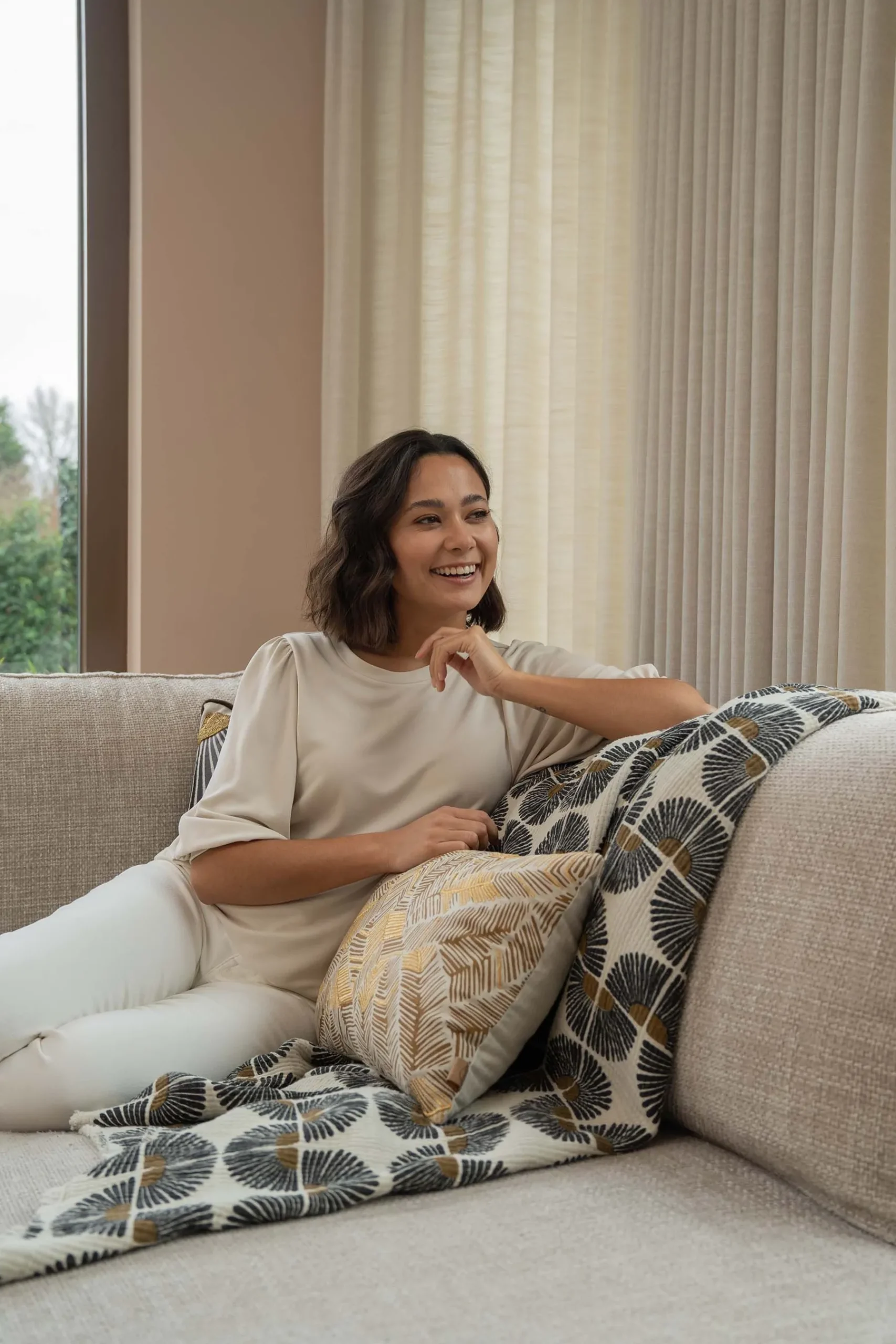 ZUSSS Plaids & Vloerkleden*plaid waaiers 130x170cm zand/antraciet/oker