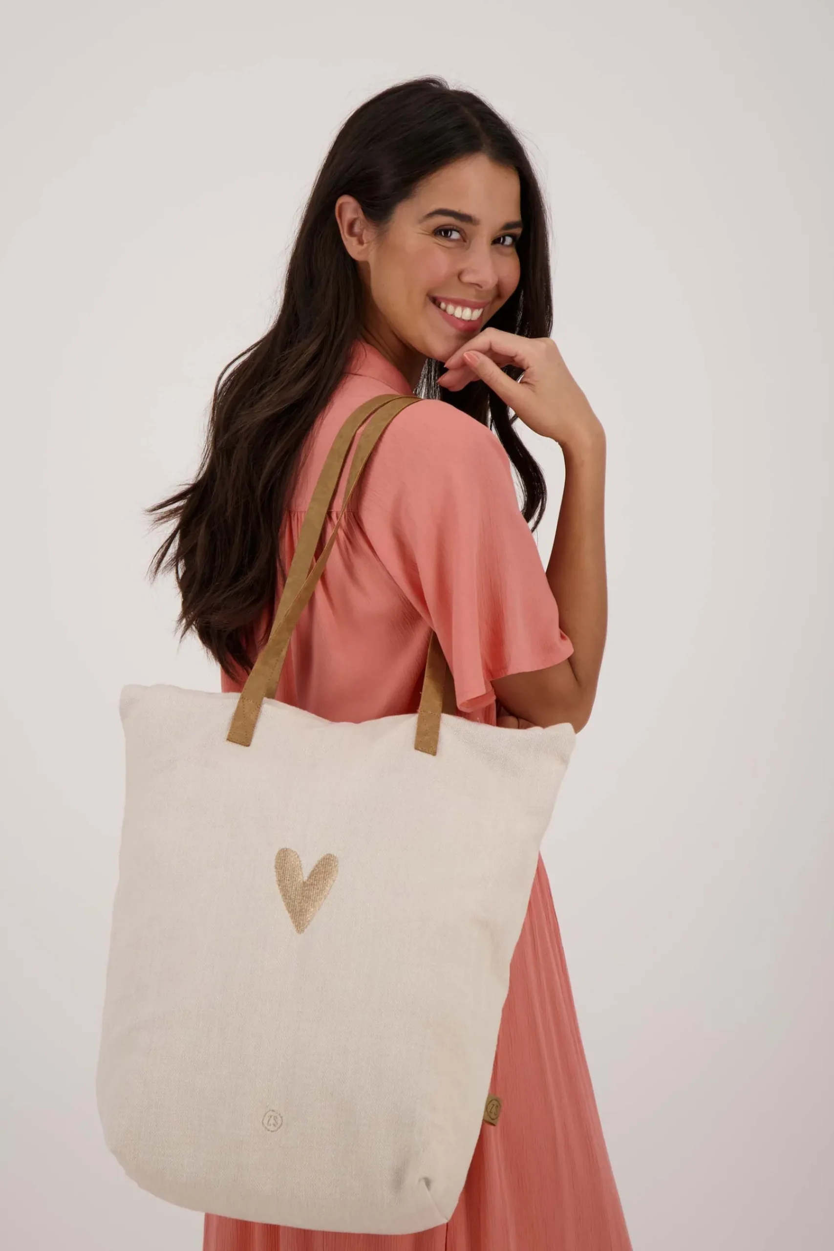 ZUSSS Schoudertassen & Handtassen*katoenen boodschappentas hartje zand