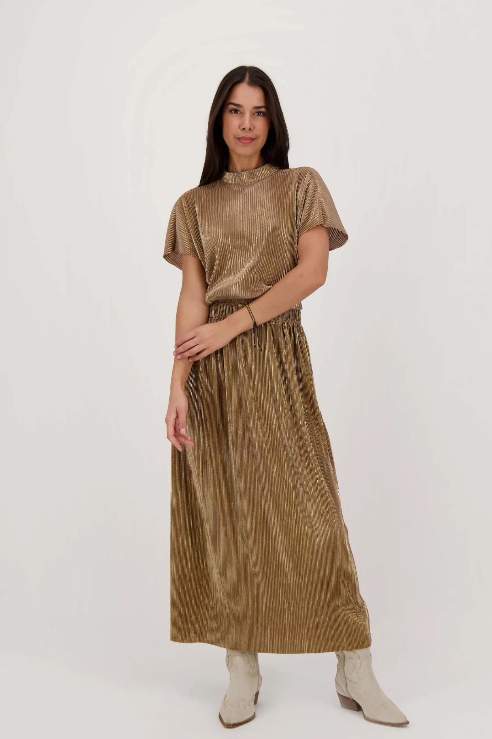 Zusss plisse turtle top champagne goud|Jaa deze wil je hebben! In deze plisse top van Zusss straal jij helemaal! Combineer ´m met een plisse rok of een fijne Zusss jeans. Met dit champagne goud kleurige item kun je alle kant op! De top heeft korte mouwen, een turtle hals en sluit in de nek. Deze leuke top is gemaakt van 100% polyamide. Kijk ook eens bij de Zusss mooimakersom je outfit af te maken.|Zusss: basic, stoer, uniek en een tikkeltje eigenwijs.