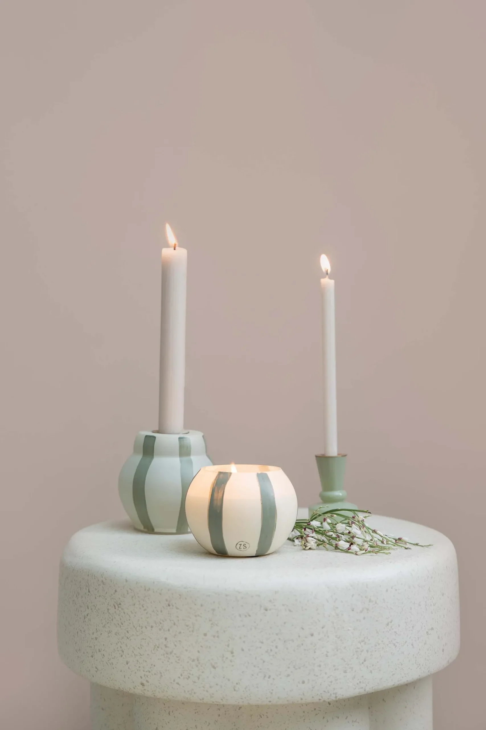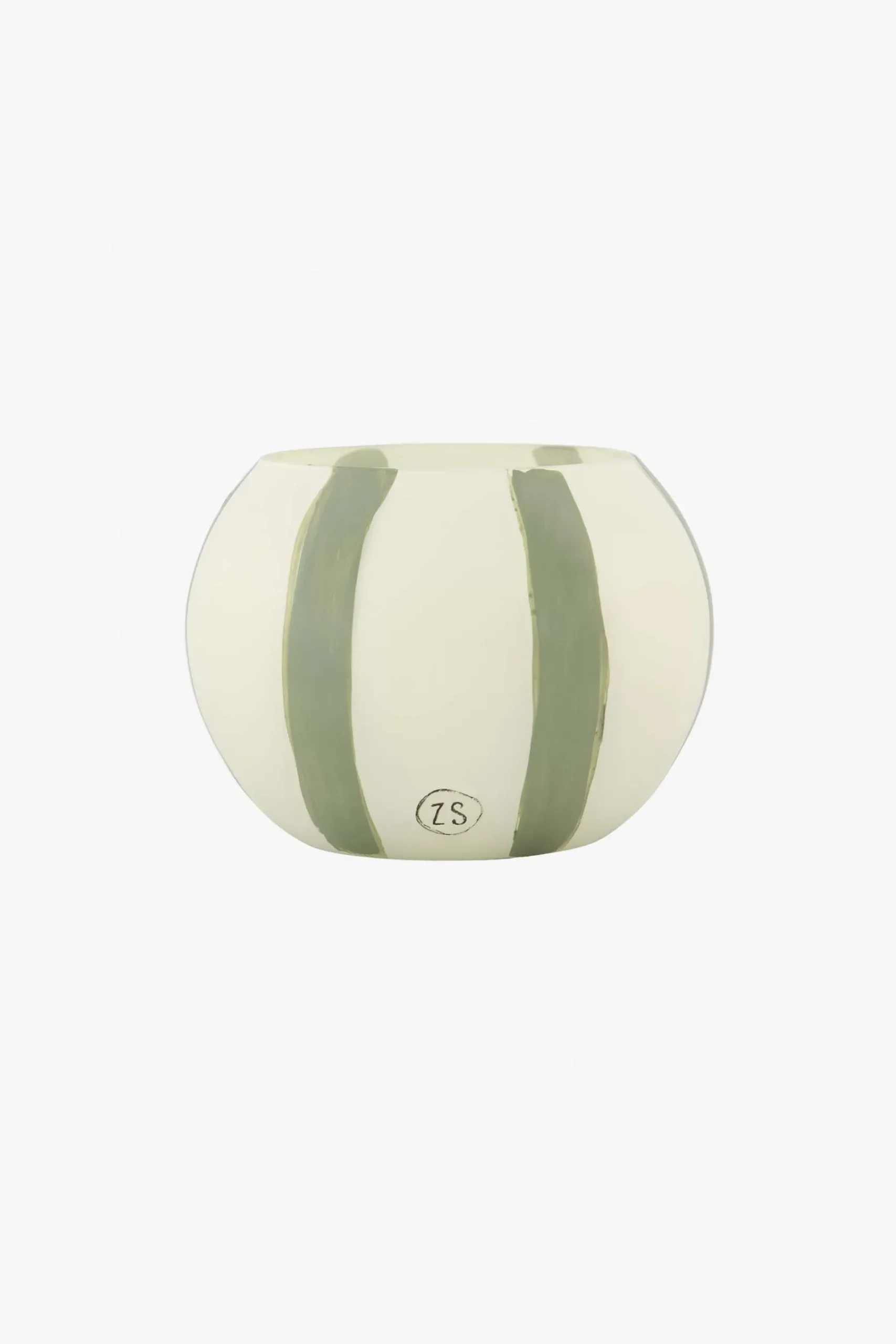 Zusss glazen geurkaars met strepen zand saliegroen|Deze glazen geurkaars van Zusss is een fijne sfeermaker in huis. Door de frisse saliegroene kleur krijg je spontaan zin in het voorjaar! Erg leuk om te combineren met een hogere kaarsenhouder of kandelaar. De kaars verspreid een heerlijke geur in je kamer! De doorsnede van deze geurkaars is 9 cm en de hoogte 7 cm. Ook erg leuk als kado! |Zusss: basic, stoer, uniek en een tikkeltje eigenwijs.