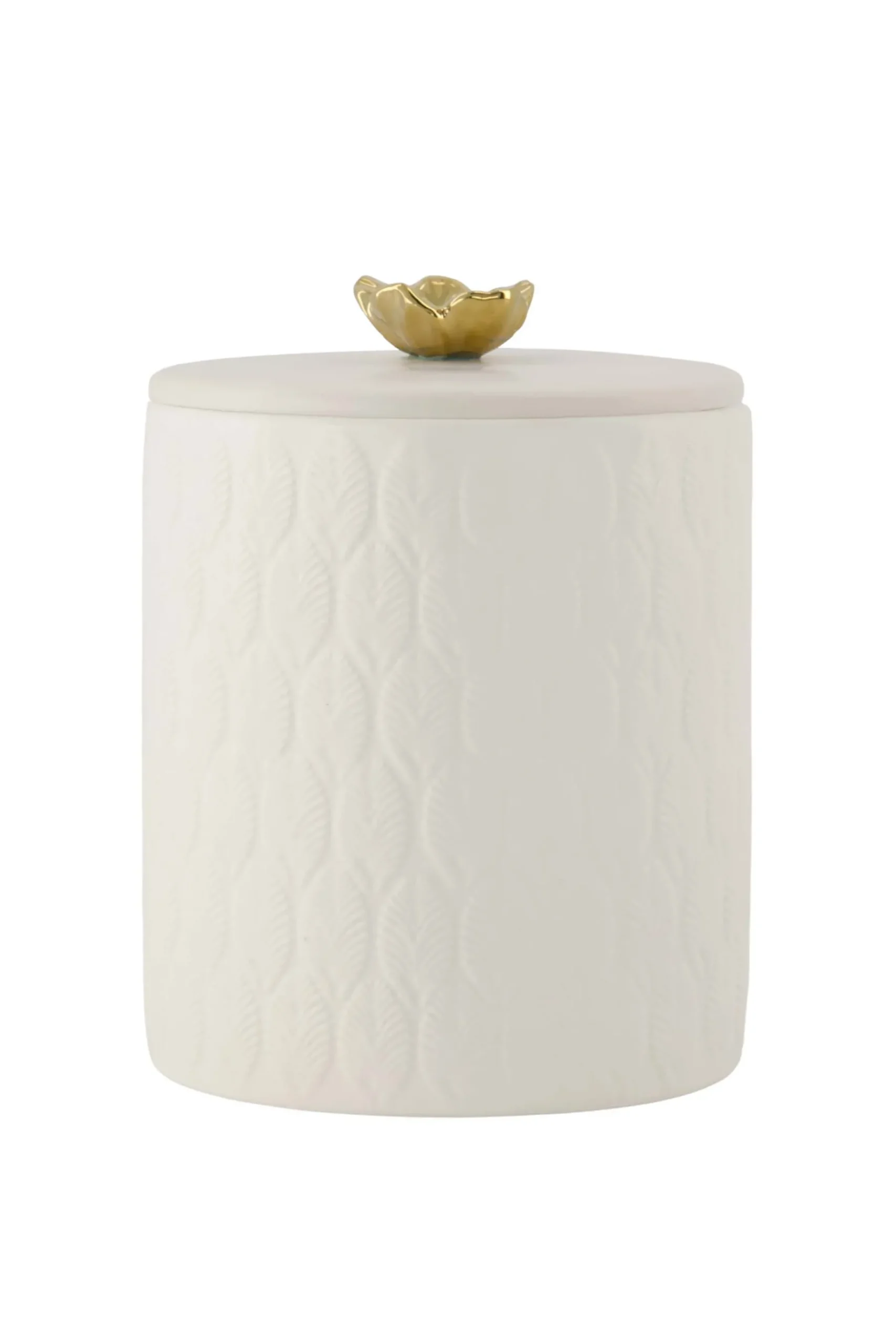 ZUSSS Geurkaarsen*keramieken geurkaars met deksel bloem structuur veertjes wit