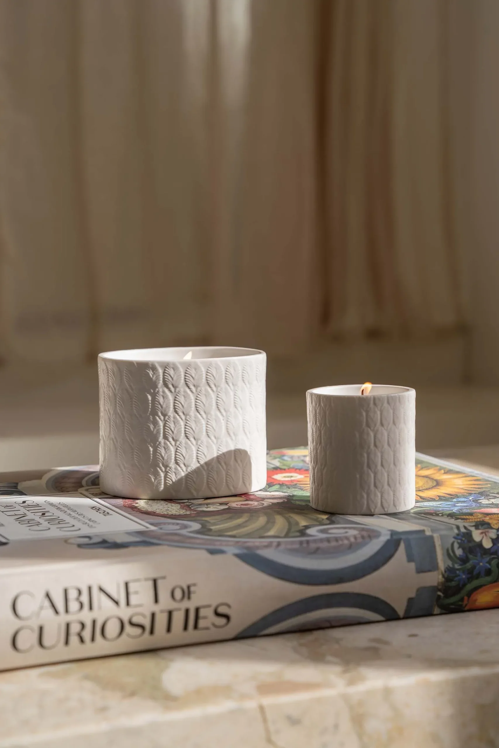 Zusss keramieken geurkaars structuur veertjes wit|Deze geurkaars van Zusss is zoo leuk. In het witte keramiek zit een mooie veertjes structuur. Deze ovalen geurkaars laat je hele huis heerlijk ruiken naar de warme, kruidige geur van crackling hearth, wat zorgt voor een knusse en gezellige sfeer. De geurkaars heeft een doorsnede van 9cm, 11cm hoog en heeft ca 45 branduren. Aan wie geef jij deze leukerd kado? |Zusss: basic, stoer, uniek en een tikkeltje eigenwijs.