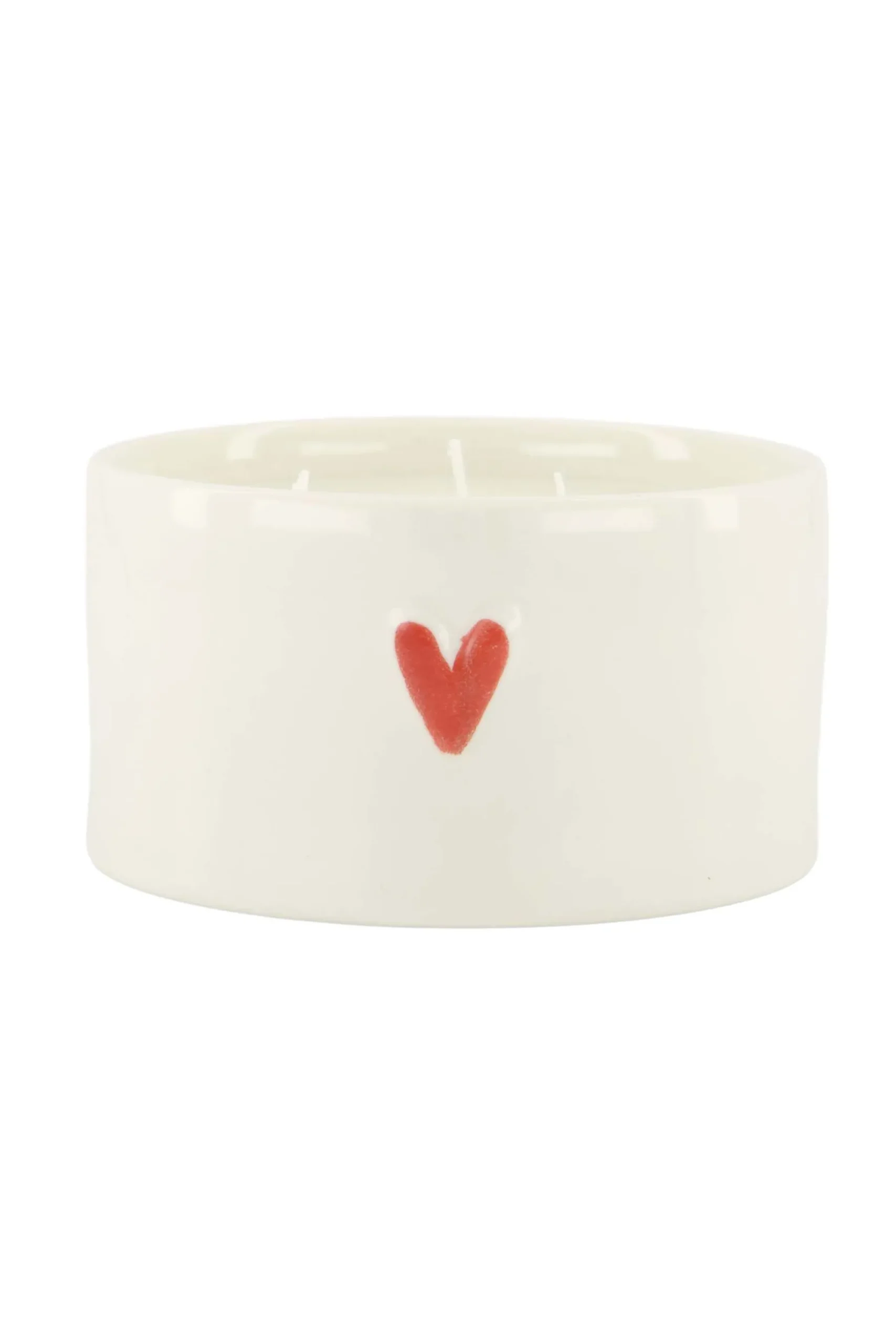 Zusss keramieken geurkaars rood hart L wit|Welk seizoen het ook is, iedereen wordt blij van gezellige kaarsjes. Deze geurkaars van Zusss zit in een witte vorm van keramiek. Op het glimmende keramiek staat een rood hartje. In deze kaars zitten drie lontjes. Steek ze aan met een Zusss lucifer en geniet van de warme, kruidige geur van crackling hearth terwijl je op de bank zit. Het potje heeft een diameter van 10,5cm, is 8cm hoog en heeft ca 40 branduren. Dit item is ook erg leuk als kadootje! |Zusss: basic, stoer, uniek en een tikkeltje eigenwijs.