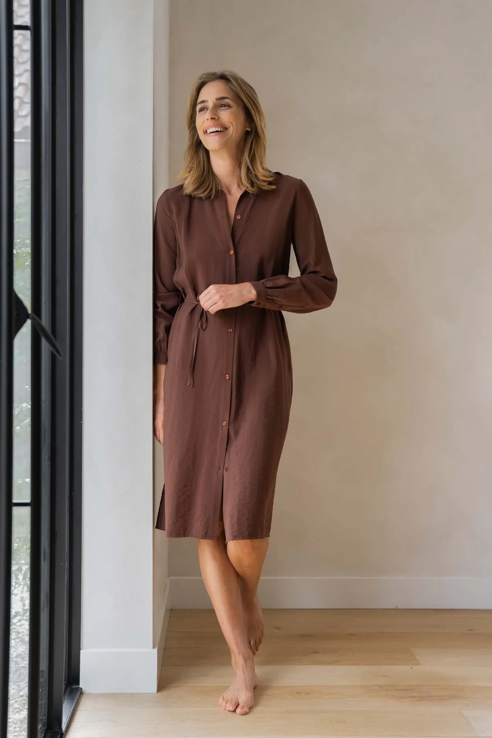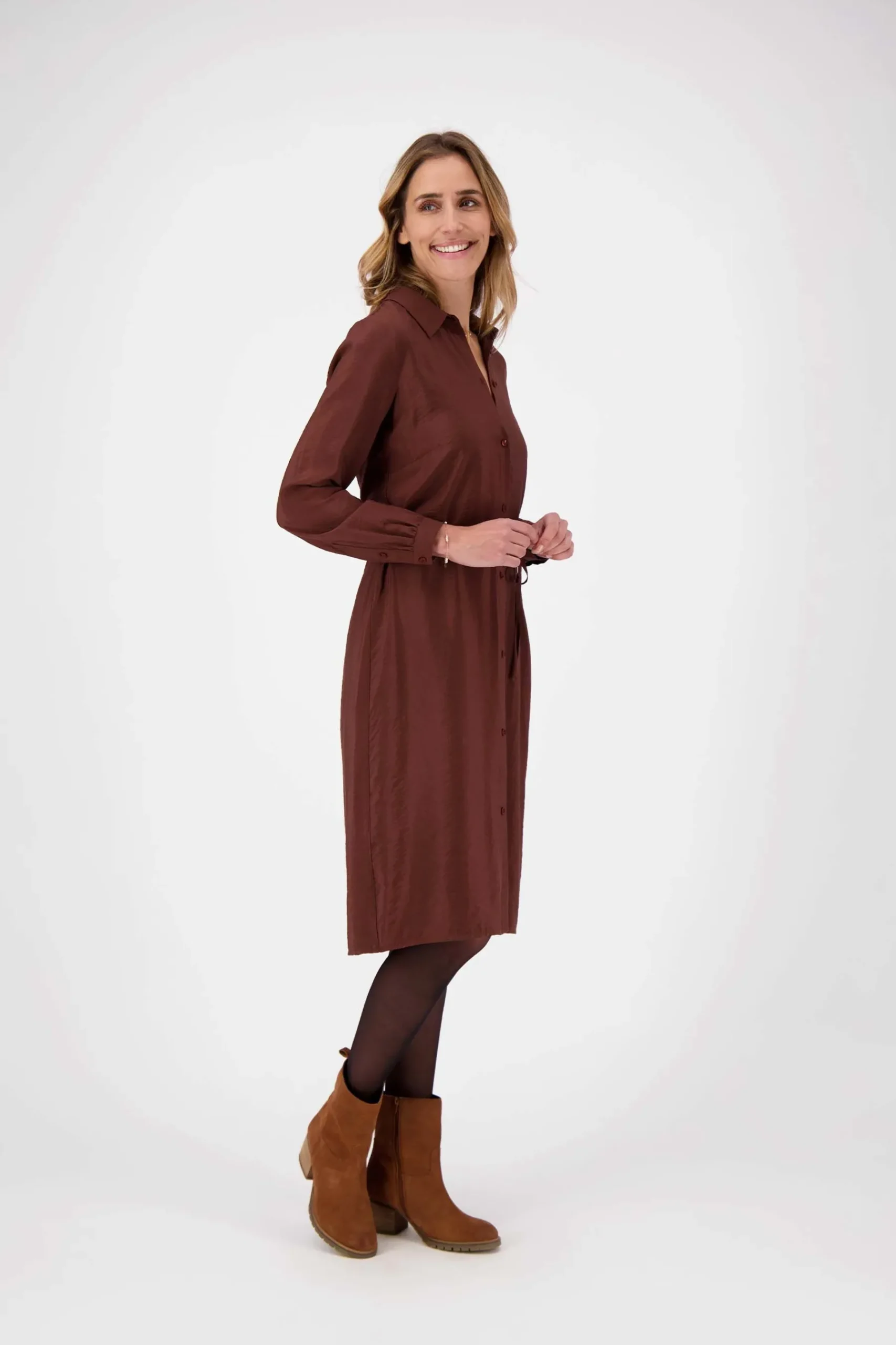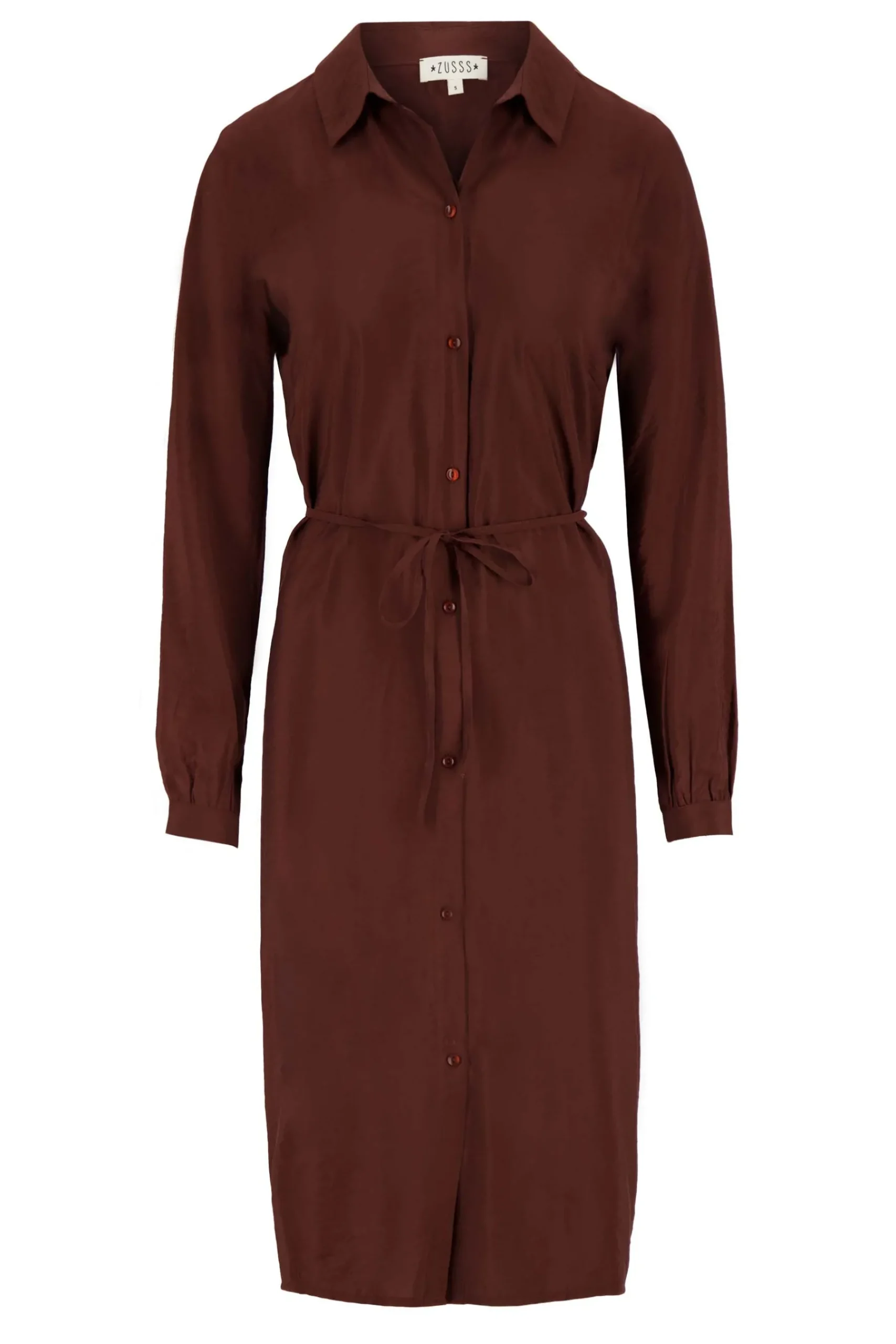 Chocoladebruine overhemdjurk van Zusss|Jaaa deze wil je hebben! Een chocoladebruine overhemdjurk als deze kan je tijdens een feestje aan, maar is ook helemaal werkproof. De jurk valt net over je knieën en heeft lange mouwen. Je draagt ‘m met stoere laarsjes of mooie pumps. De chocoladebruine kleur past helemaal bij de trends van dit najaar. Doe er in op koude dagen een Zusss vest over aan en je blijft de hele dag lekker warm. De jurk is met 65% viscose en 15% polyamide zo fijn om te dragen, dat je deze musthave telkens weer uit de kast trekt. Doe de overhemdjurk in een fijn wasprogramma en was niet hoger dan 30 graden. Stop ‘m liever niet in de droger.|Zusss: basic, stoer, uniek en een tikkeltje eigenwijs..