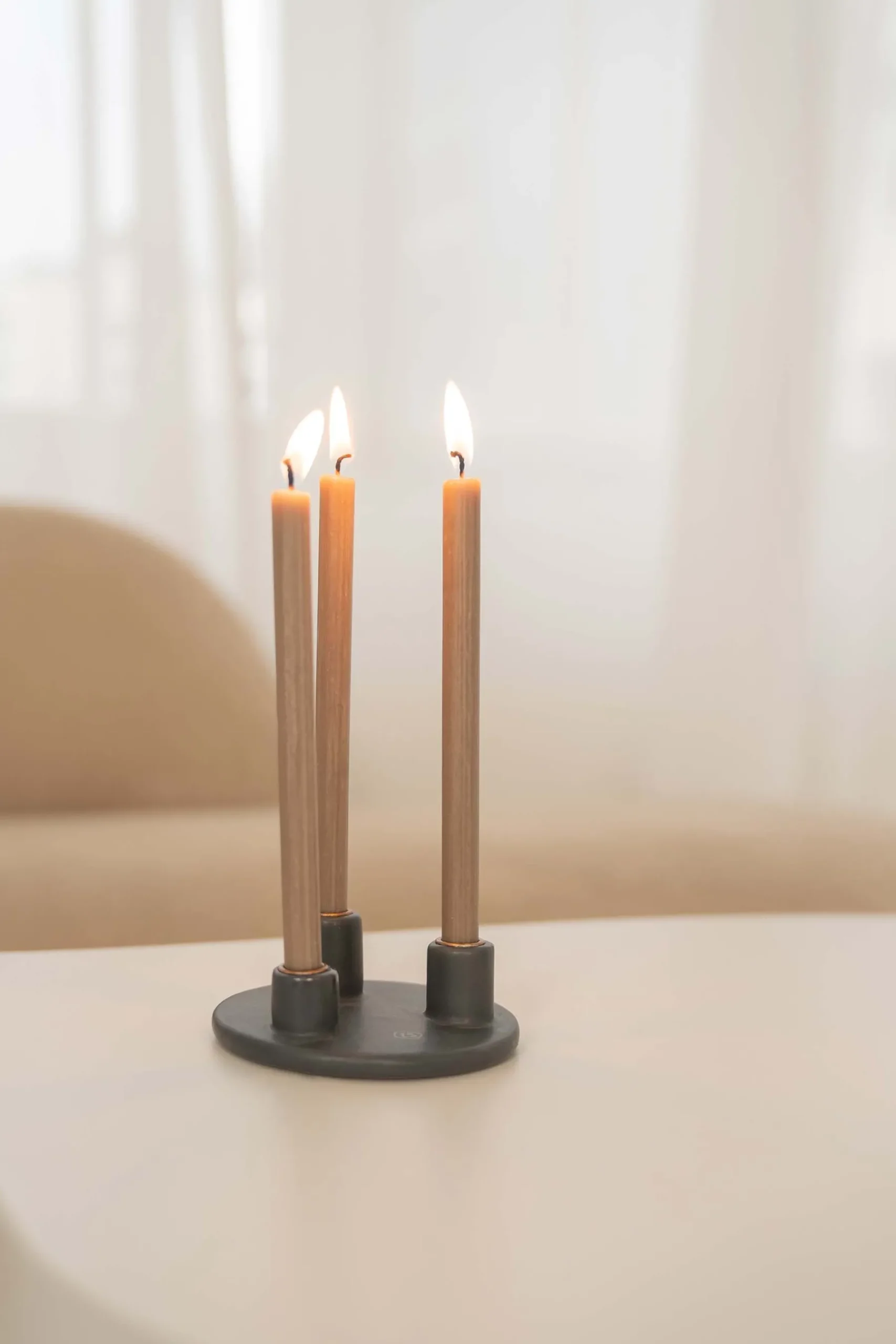 ZUSSS Kaarsen|Kaarsenhouders*keramieken kandelaar voor 3 smalle kaarsjes antracietgrijs