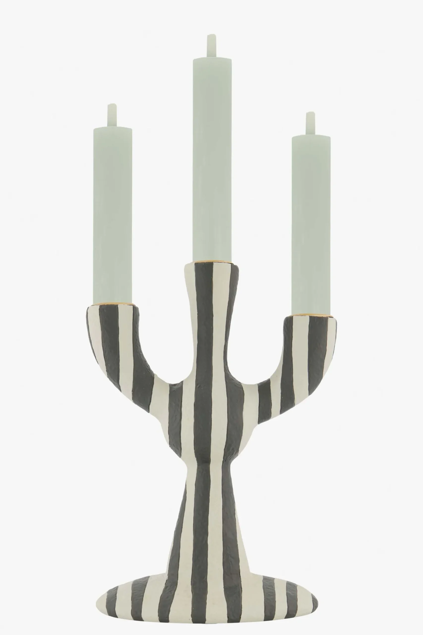 ZUSSS Kaarsen|Kaarsenhouders*polystone kandelaar met strepen zand/antraciet