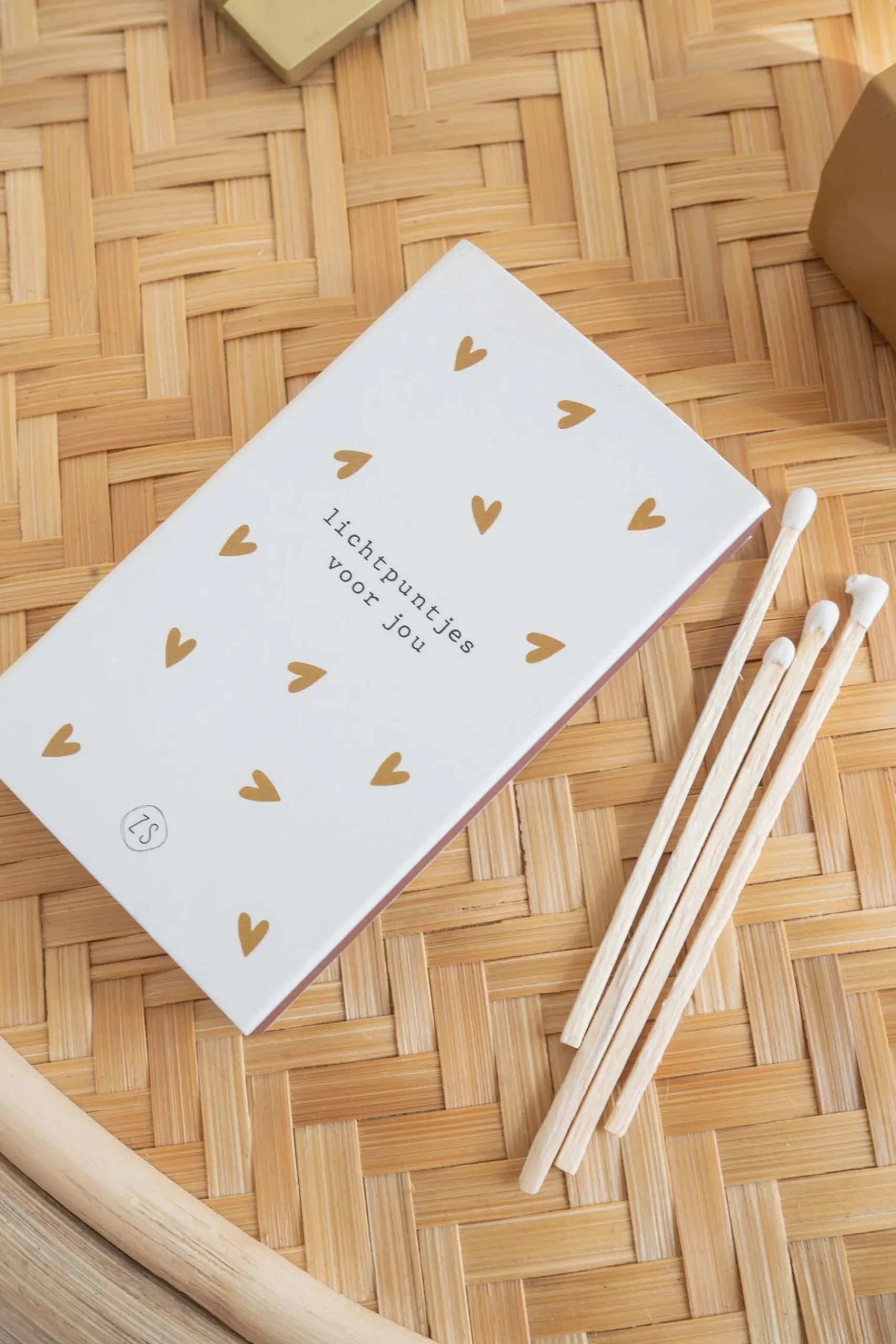 Zusss lucifers lichtpuntjes voor jou linnen|Dit doosje lucifers van Zusss mag zeker gezien worden! Geef ‘m een mooi plekje in je interieur. De lucifers zijn verpakt in een peper en zout kleurig doosje met gouden hartjes. Ook staat er een tekst op: lichtpuntjes voor jou. Ook erg leuk als kadootje!|Zusss: basic, stoer, uniek en een tikkeltje eigenwijs.