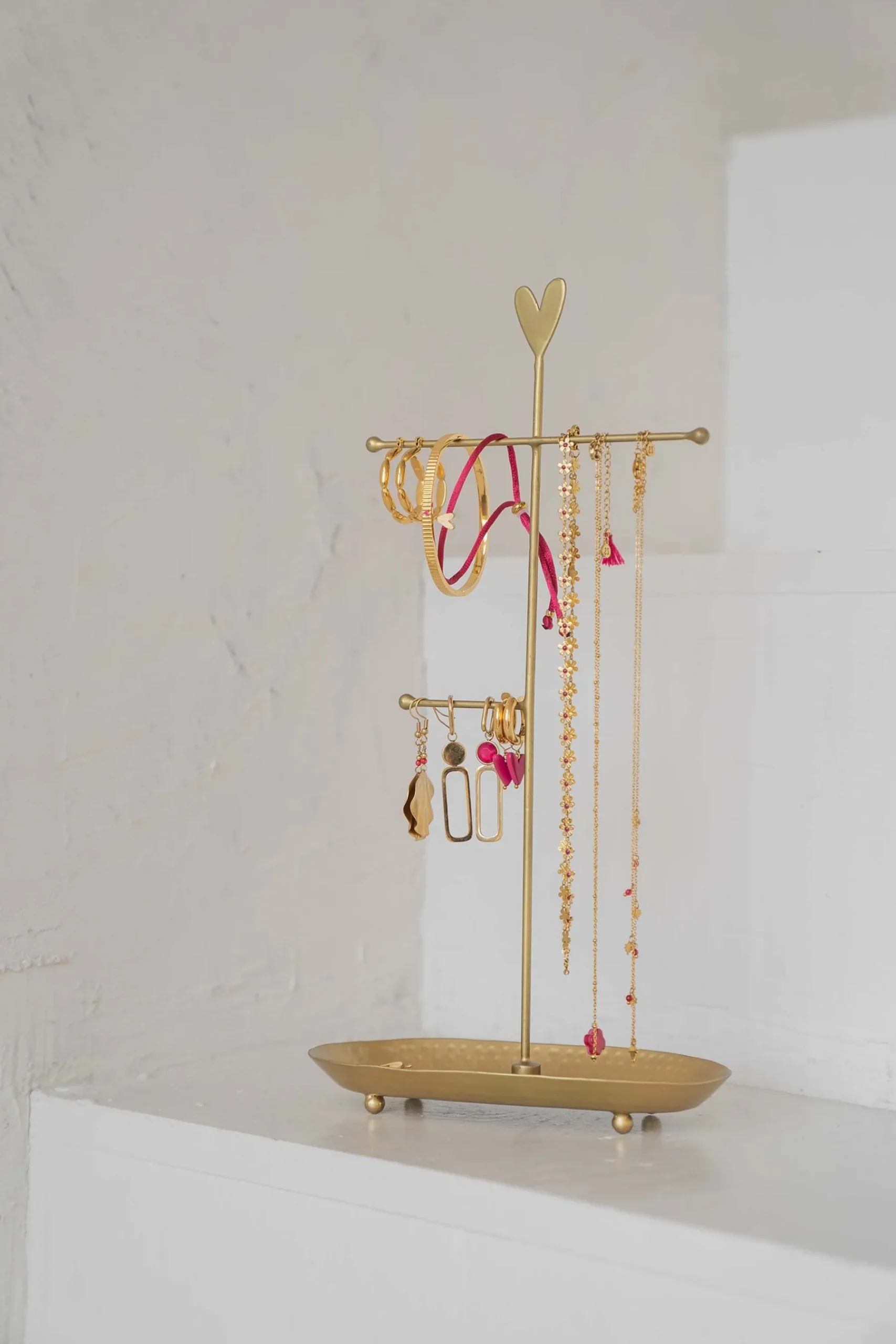 Zusss sieradenrekje hartje goud|Hoe leuk is dit sieradenrekje van Zusss! Dit gouden rekje is ideaal om je sieraden op te bewaren en ziet er ook nog eens stijlvol uit. Welk mooie plekje geef jij ‘m? Dit metalen rekje heeft een formaat van 16,5×7,5×31 centimeter. Verras jezelf of een ander met dit leuke kado! |Zusss: basic, stoer, uniek en een tikkeltje eigenwijs.