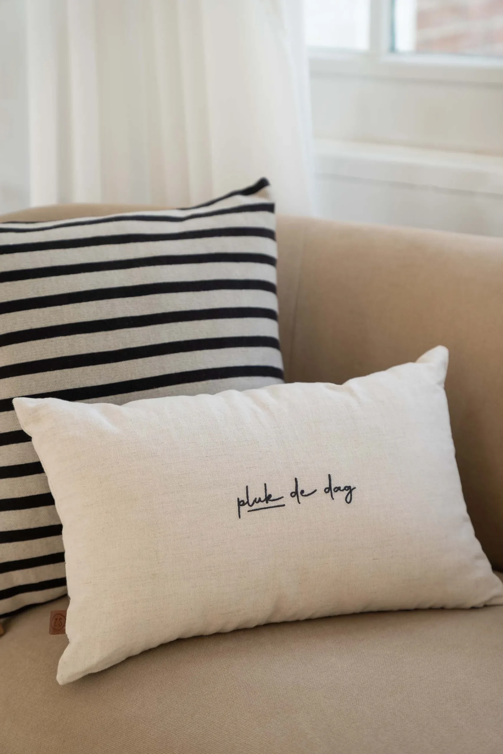 Zusss kussen bloemen silhouet borduur 50x30cm zand|Dit sjieke kussen van Zusss is perfect voor jouw bank. Wat een gave borduursels! Dit zandkleurige kussen heeft op de voorkant een geborduurde bloemen en op de achterkant staat de tekst: pluk de dag. Dit item is gemakkelijk te combineren met allerlei kleuren, handig! Dit kussen is gemaakt van 50% katoen en 50% linnen. Het kussen is 50cm breed en 30cm hoog. Het Zusss logo vind je terug op het PU labeltje aan de zijkant van het kussen. Vergeet niet een kijkje te nemen bij de Zusss kussens. Welke match jij met elkaar?|Zusss: basic, stoer, uniek en een tikkeltje eigenwijs.