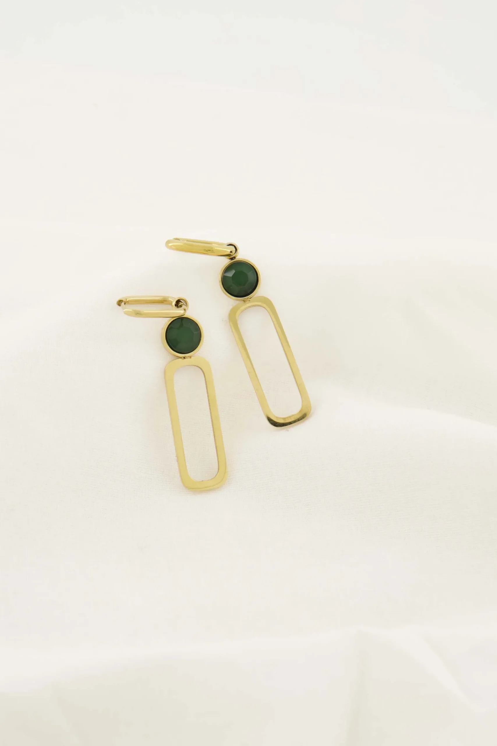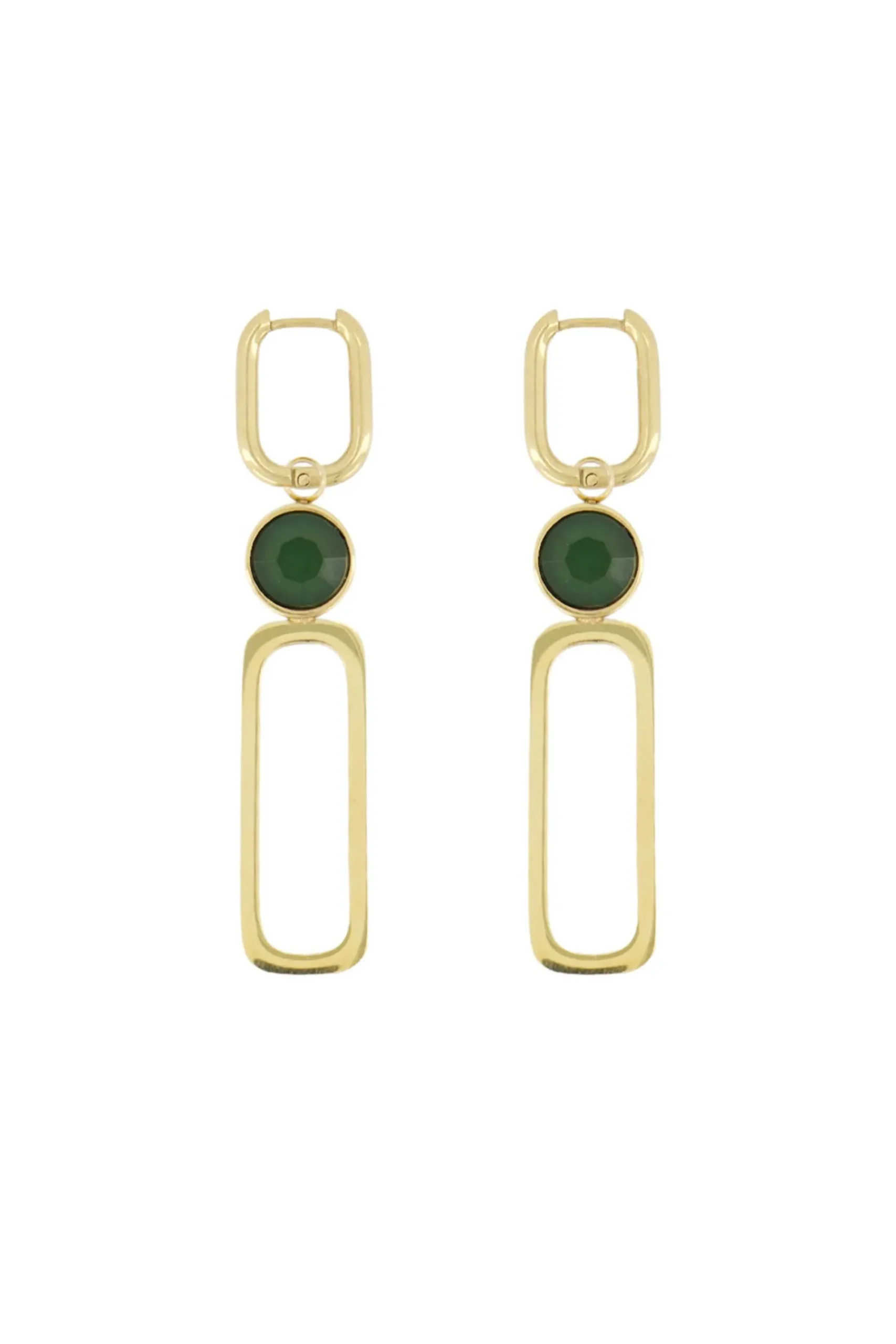 Zusss oorbel met glassteen donkergroen|Deze oorbellen van Zusss zijn zo gaaf! De oorbellen zijn rechthoeking en lekker fleurig door het donkergroene glassteentje. Wat een leukerds! Combineer ze met andere mooimakers met een donkergroen detail! De oorbellen zijn gemaakt van stainless steel en verkleurden hierdoor niet. De oorbellen zijn 6,1cm lang en 1,2cm breed. Met deze leuke dingen val jij op! Ook leuk om kado te geven!|Zusss: basic, stoer, uniek en een tikkeltje eigenwijs.