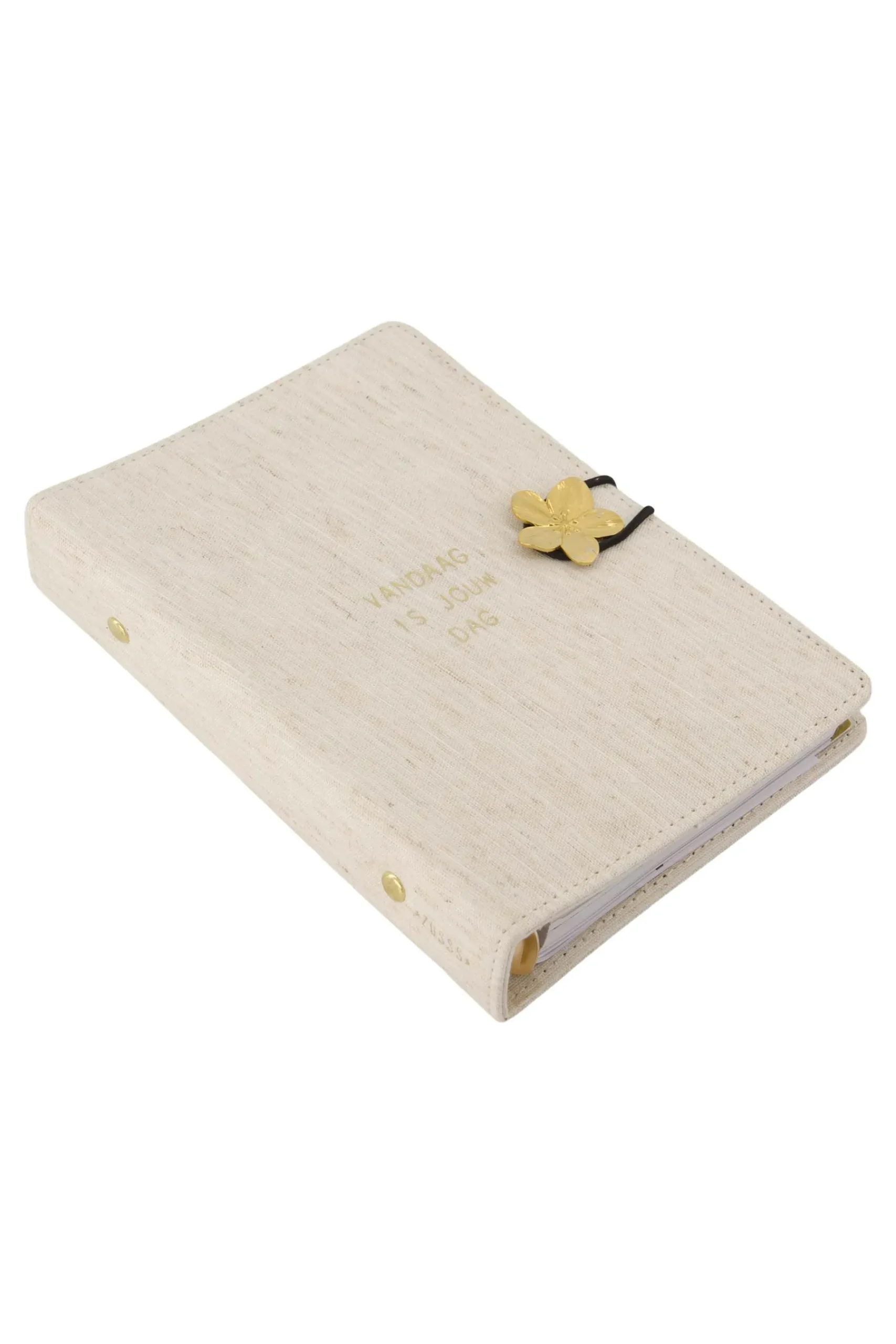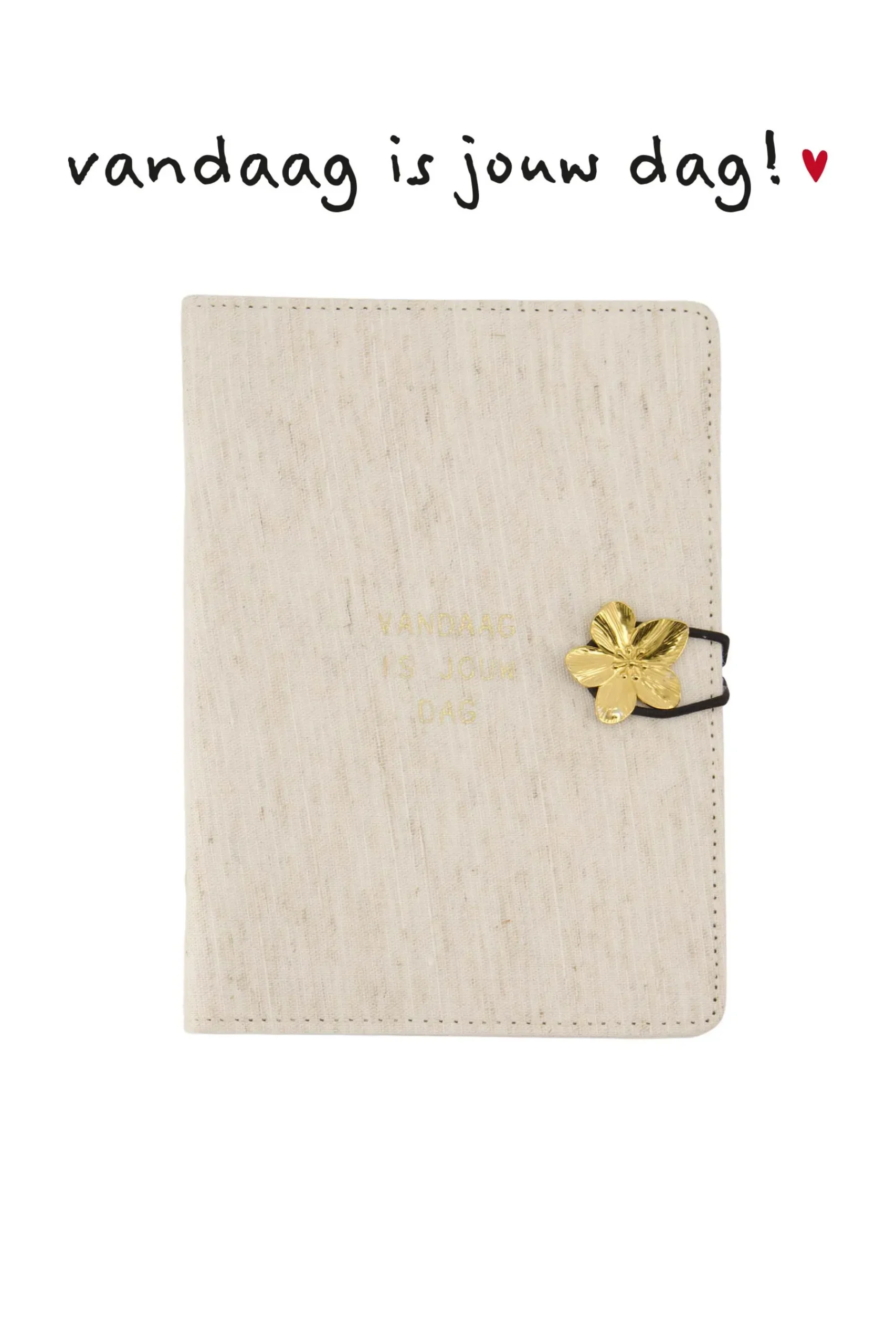 Zusss agenda 2025 vandaag is jouw dag linnen|Deze agenda van Zusss is zooo leuk! Hierin houd je lekker overzichtelijk je plannen bij, ideaal! Deze agenda heeft een linnen omslag en sluit met een elastiekje om de gouden bloem. De agenda wordt geleverd inclusief agendavulling voor het jaar 2025. Wil jij een omslag van een oudere Zusss agenda hergebruiken? Dan is de agendavulling voor 2025 ook los bestelbaar. Het formaat van de Zusss agenda is 29x18cm. Ook erg leuk als kado! |Zusss: basic, stoer, uniek en een tikkeltje eigenwijs.