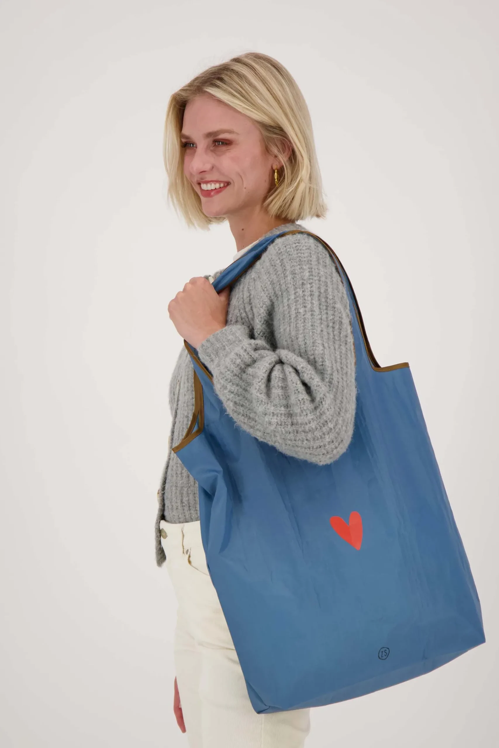 Zusss opvouwbaar boodschappentasje smile grijsblauw|Dit grijsblauwe boodschappentasje van Zusss is o zoo handig! Je kunt ‘m opvouwen en daardoor overal gemakkelijk mee naartoe nemen. Het opvouwbare boodschappentasje is 44x45x10cm groot en gemaakt van 100% polyester. Op het tasje staat een Zusss hartje en de tekst: smile. Neem ook eens een kijkje bij de Zusss mooimakers.Welke vallen in de smaak?|Zusss: basic, stoer, uniek en een tikkeltje eigenwijs.