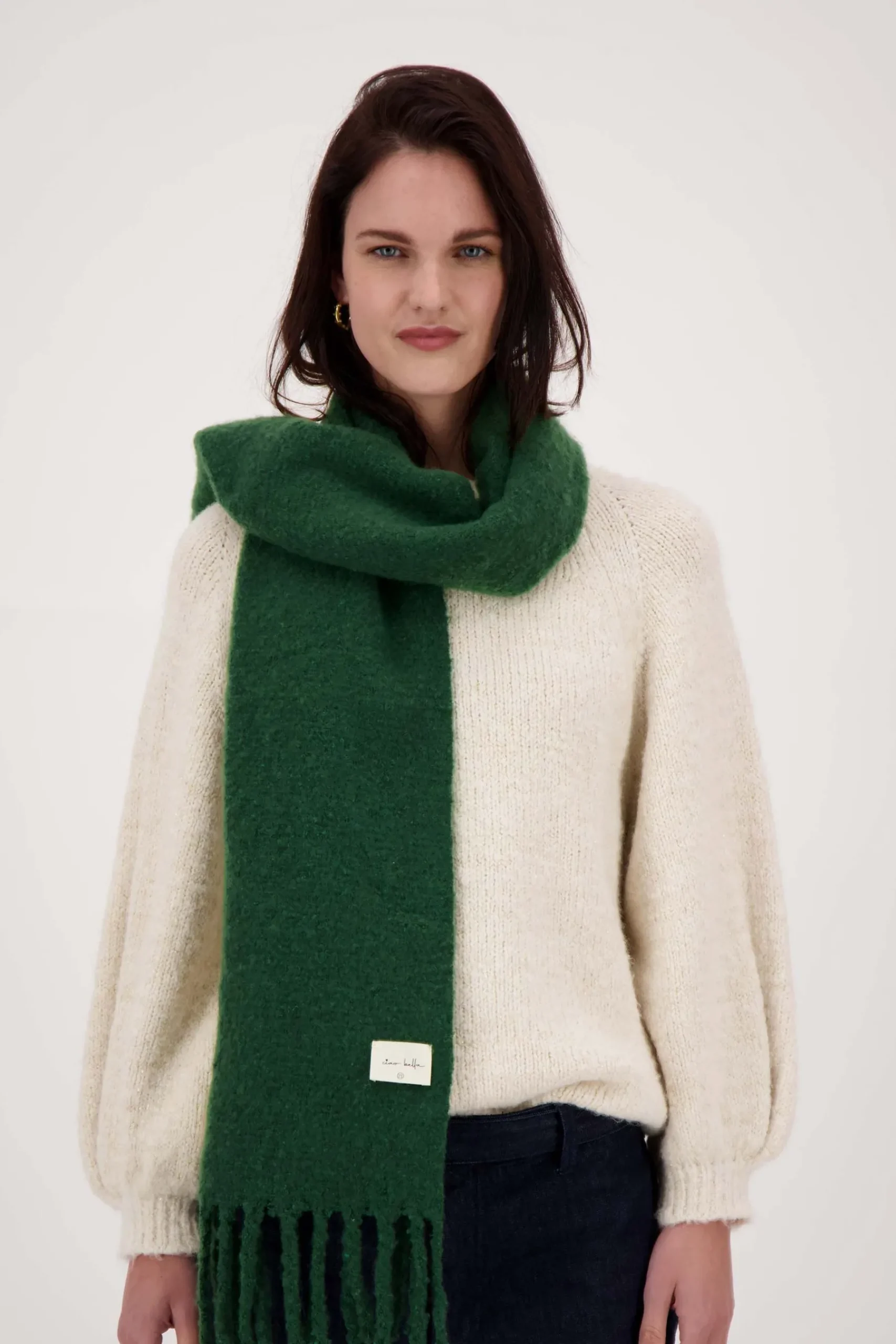 Zusss sjaal donkergroen|Voeg wat kleur toe aan je outfit met deze fijne sjaal van Zusss. Met deze zachte sjaal is jouw nekkie in ieder geval niet kaal! Deze donkergroene sjaal combineer je met basic kleuren óf juist met een vrolijk kleurtje. Op het labeltje staat het Zusss logo en de tekst: ciao bella. De muts is gemaakt van 100% polyester. Kijk ook eens bij de andere Zusss accessoiresom jouw look helemaal af te maken!|Zusss: basic, stoer, uniek en een tikkeltje eigenwijs.