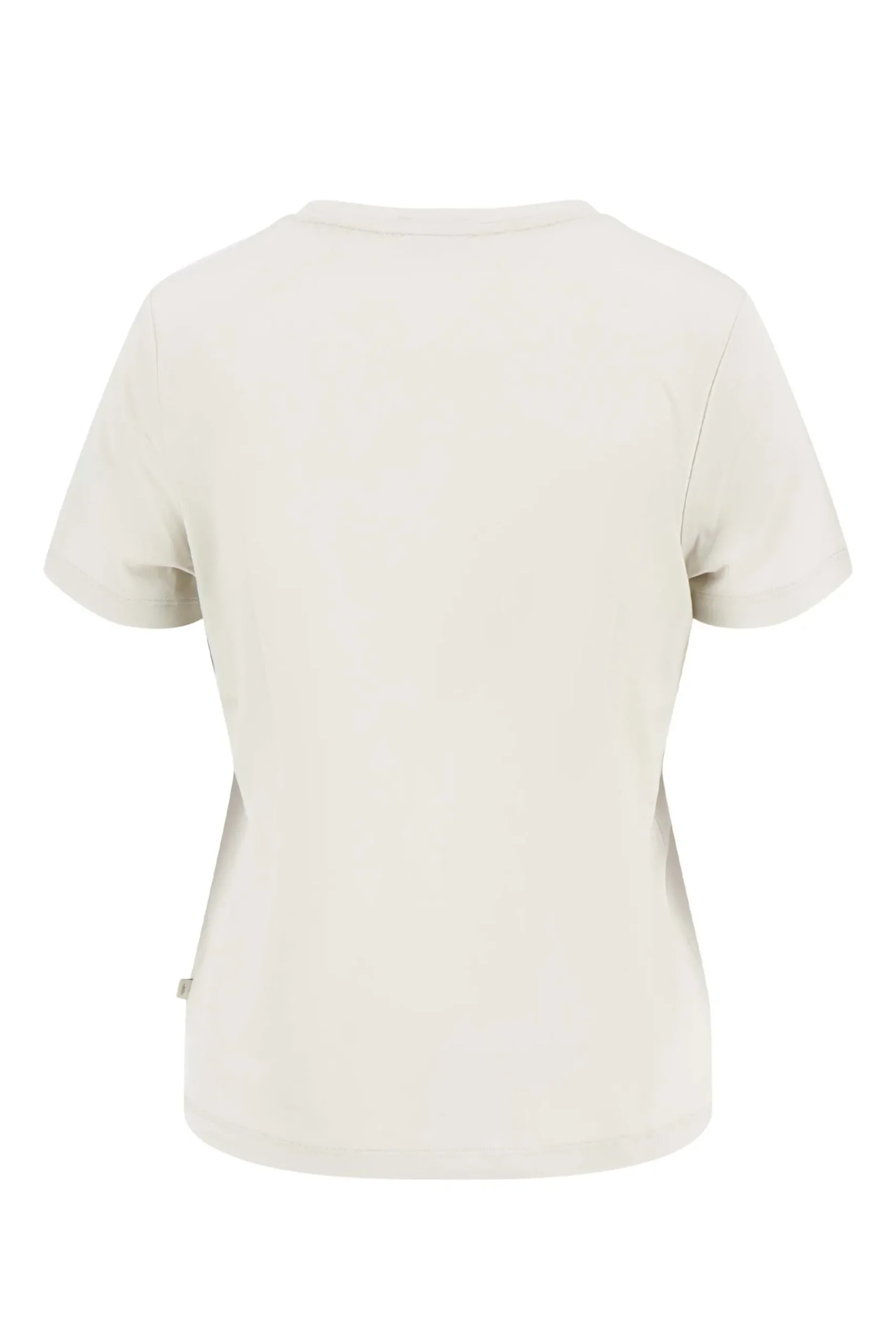 Basic t-shirt in zand|Zandkleurig t-shirt van Zusss met een ronde hals. Gemaakt van heerlijk zacht, duurzaam materiaal. Een t-shirt met een lyocel en polyester combinatie. Shop dit fijne t-shirt in drie verschillende kleuren. Leuk te combineren op een rok of een broek. En is het wat kouder buiten? Trek dan een fijn vest over het t-shirt aan. Het shirt heeft een ademende stof, dat zorgt voor extra draagcomfort. Was het shirt op 30 graden, al heeft handwassen wel de voorkeur. Als je het shirt uithangt na het wassen, hoef je het in de meeste gevallen niet te strijken. Wil je dit toch doen, strijk het t-shirt dan binnenstebuiten.|Zusss: basic, stoer, uniek en een tikkeltje eigenwijs.