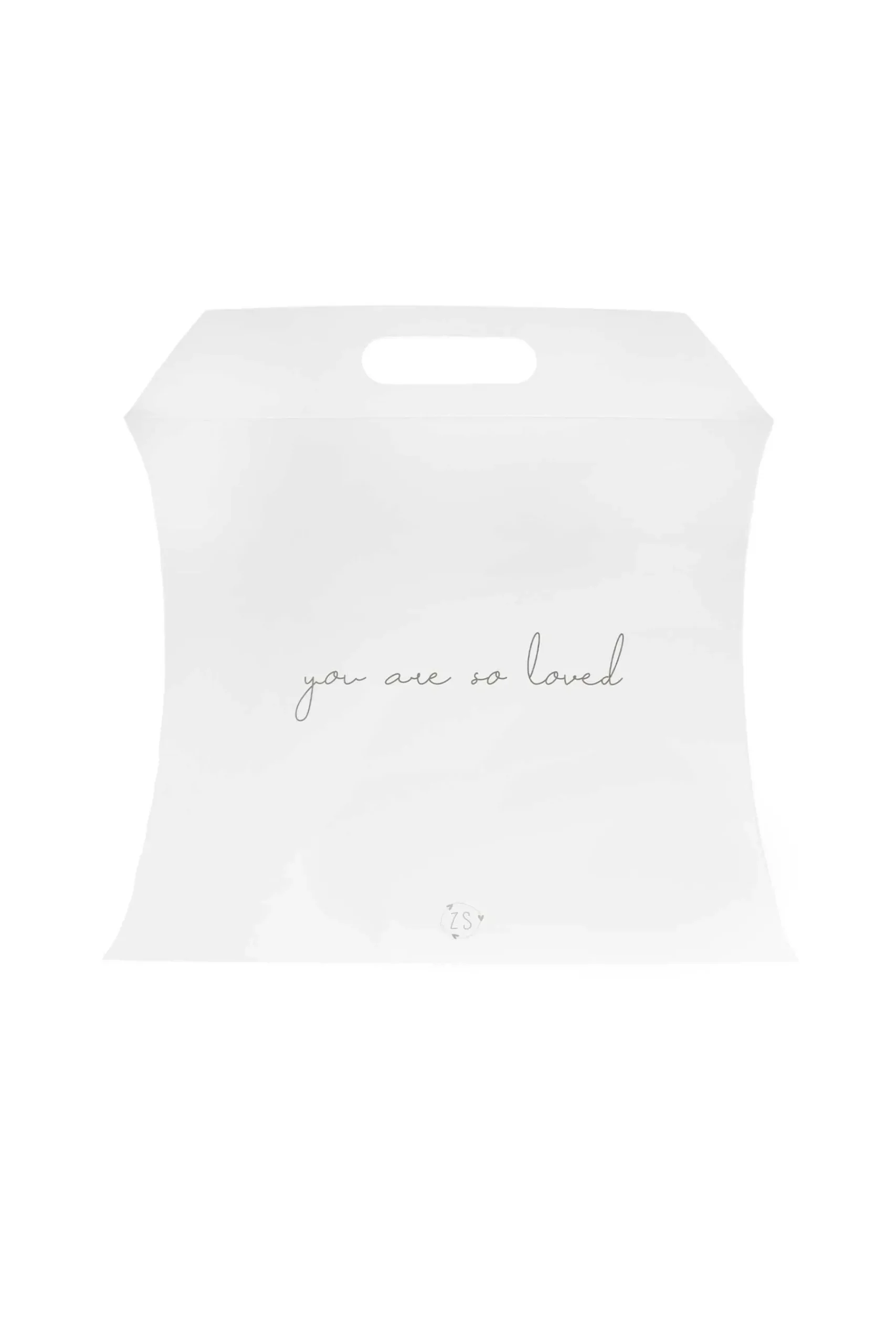 Zusss kadoverpakking met de tekst you are so loved|Met deze kadoverpakking van Zusss maak je het geven van een (kraam)cadeautje nog leuker! De papieren kadoverpakking is wit met daarop de tekst “you are so loved” in zwarte, sierlijke letters. Daaronder staat het Zusss logo afgebeeld. Je vouwt de zijkanten in elkaar door middel van de vouwsluiting. Ook is de verpakking voorzien van een hengsel.|Zusss: basic, stoer, uniek en een tikkeltje eigenwijs.